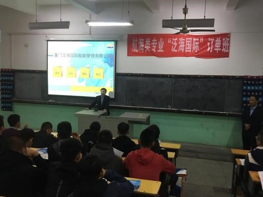 最后,廈門泛海國際船舶有限公司周永煌副總經(jīng)理分別與航海技術(shù)系江明光主任、輪機(jī)工程系陳清彬主任簽訂了訂單班培養(yǎng)協(xié)議。簽約儀式結(jié)束后,周永煌副總在航海樓東大教室面向2017級(jí)航海技術(shù)和輪機(jī)工程專業(yè)100余新生進(jìn)行企業(yè)宣講,現(xiàn)場(chǎng)氣氛熱烈,同學(xué)們積極與周永煌副總交流,了解用人單位情況。通過這一雙贏協(xié)議,使航海類專業(yè)的辦學(xué)更具有針對(duì)性和專業(yè)性,有利于更好地培養(yǎng)出適合企業(yè)需要的緊缺專業(yè)技術(shù)人才。