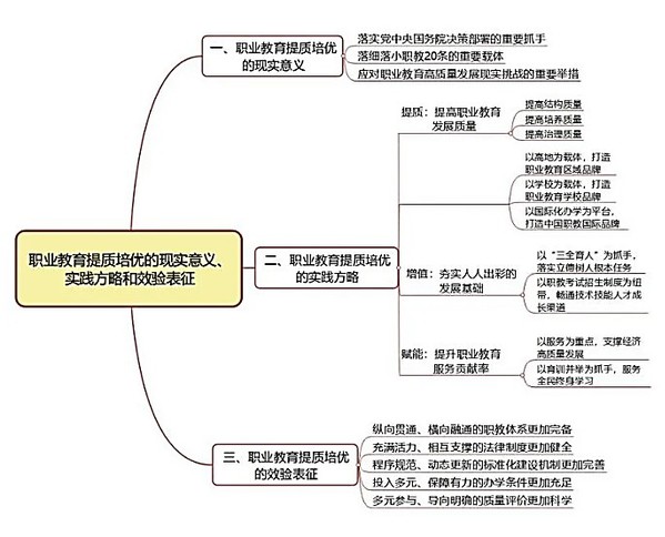 所謂提質,至少要從教育結構、人才培養(yǎng)、治理水平三方面提升職業(yè)教育質量。結構質量的核心是完善體系建設,人才培養(yǎng)質量的核心是推進“三教”改革,治理質量的核心是構建多元參與的質量治理格局。