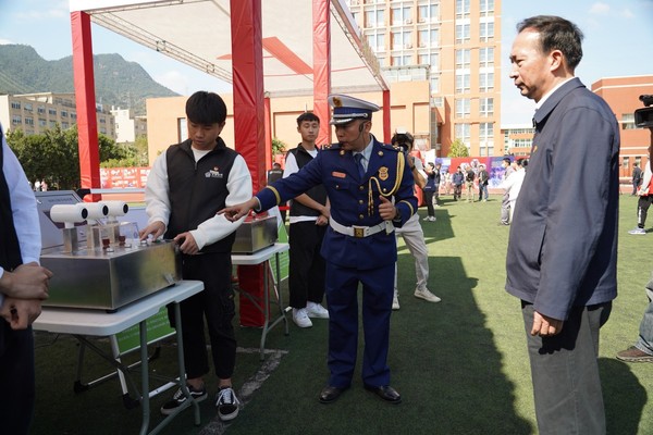11月10日在消防日活動當(dāng)天,由安全與環(huán)境學(xué)院輔導(dǎo)員徐林悅慰老師帶隊,安全與環(huán)境學(xué)院學(xué)生向參加活動的省領(lǐng)導(dǎo)以及來自企業(yè)、社區(qū)的參觀者講解的消防安全知識,家庭防范消防火災(zāi)的注意事項和要點(diǎn),展示了高壓安全隱患試驗裝置、靜電發(fā)生實驗裝置、電纜破損安全隱患實驗裝置、線路過載實驗裝置、低壓觸電實驗裝置、電器漏電安全隱患實驗裝置、粉塵爆炸等實驗裝置,并向參觀者演示了粉塵爆炸、液體爆炸和氣體爆炸,展示現(xiàn)場引起了李德金副省長等一行的駐足觀察和認(rèn)可。