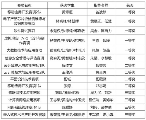 信息與智慧交通學院共派出15支代表隊,與來自全省各地高職院校參賽隊伍同臺競技,經(jīng)過激烈角逐。我院共榮獲福建省職業(yè)院校技能大賽一等獎6個、二等獎4個、三等獎4個。