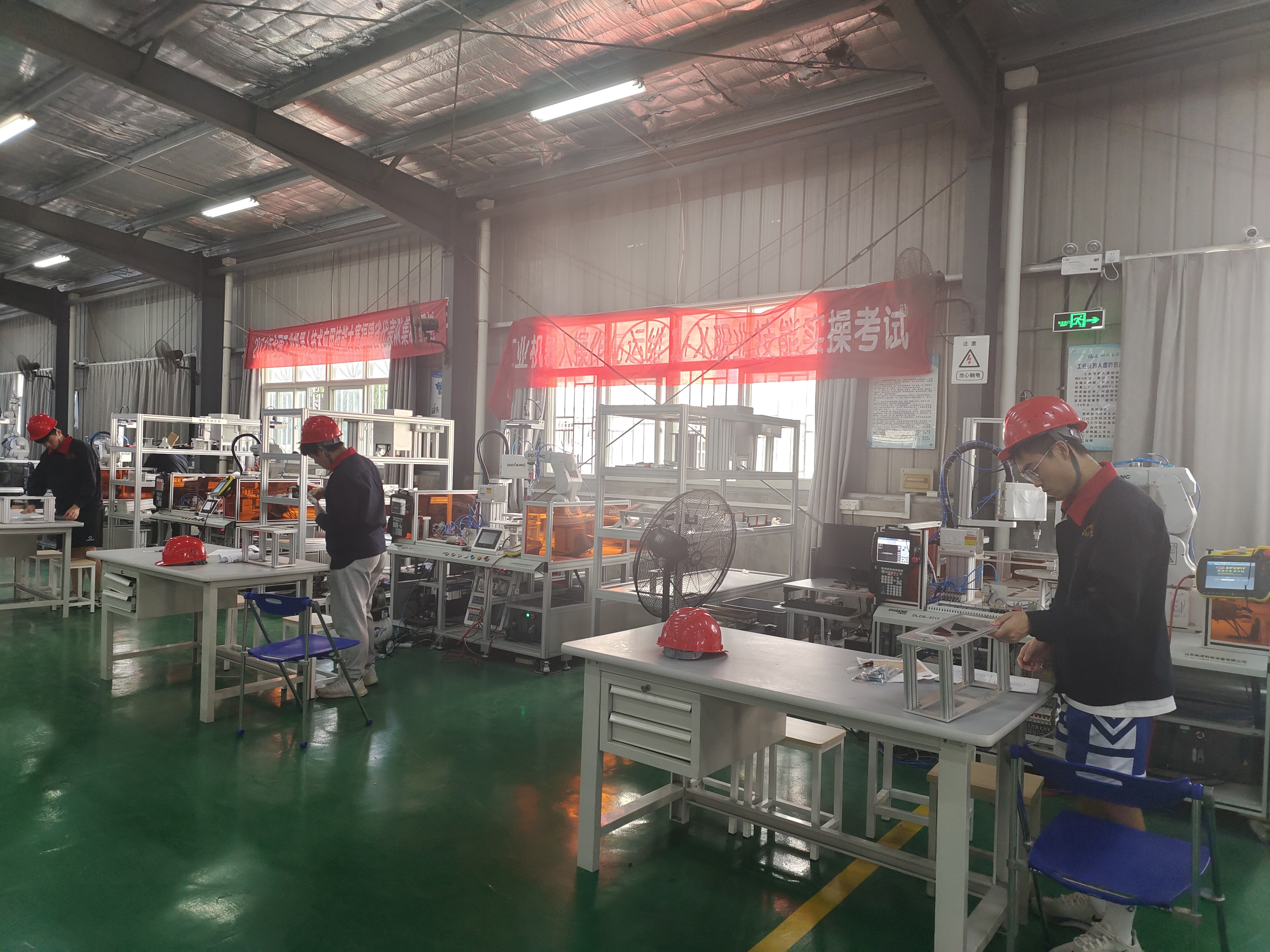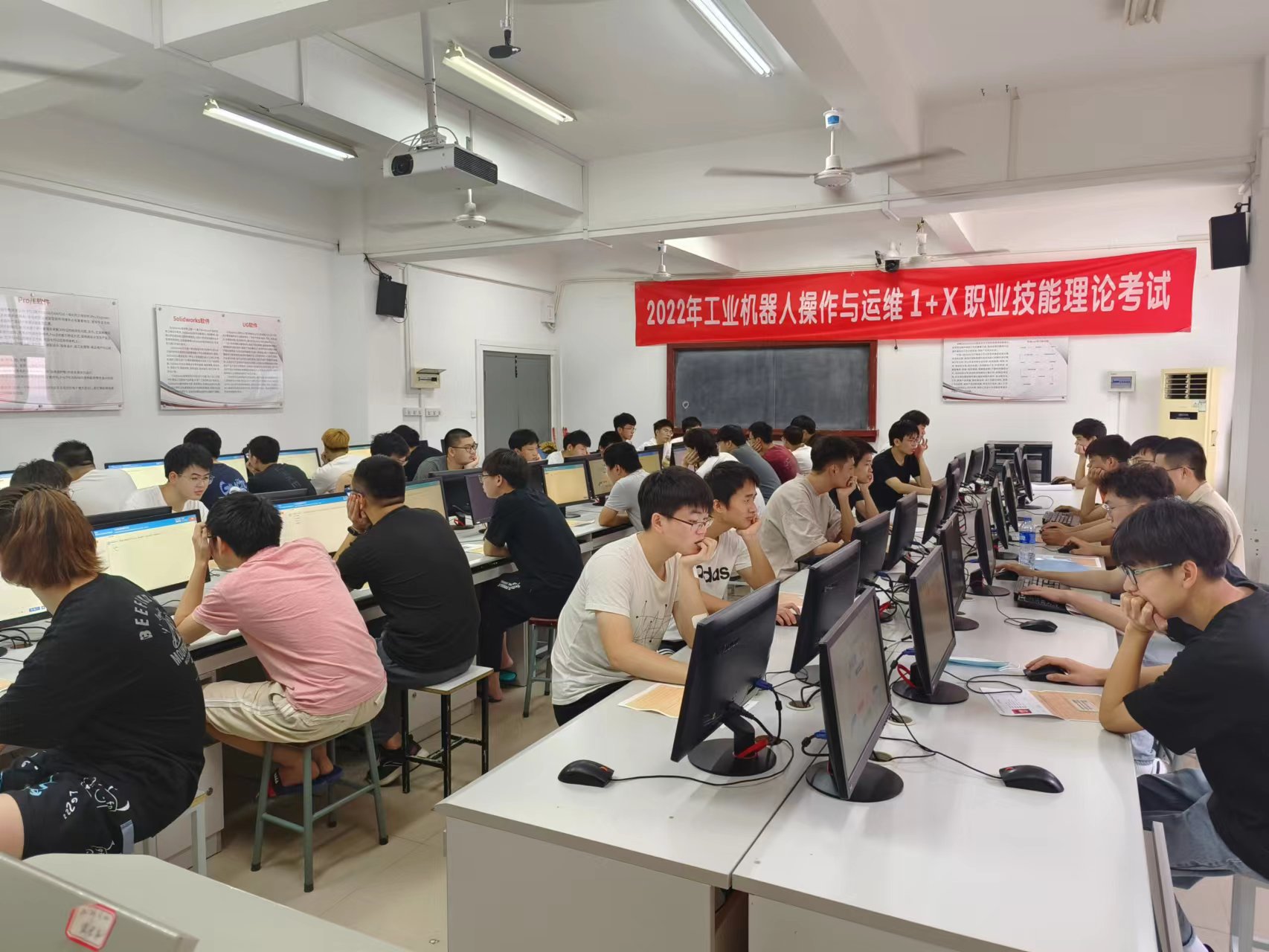 為貫徹落實(shí)《國(guó)家職業(yè)教育改革實(shí)施方案》和《關(guān)于在院校實(shí)施“學(xué)歷證書若干職業(yè)技能等級(jí)證書”制度試點(diǎn)方案》等文件精神,機(jī)械與智能制造學(xué)院于2022年6月19日、26日分別進(jìn)行了工業(yè)機(jī)器人操作與運(yùn)維1+X證書試點(diǎn)理論和實(shí)操考試。本次考證對(duì)象為20級(jí)工業(yè)機(jī)器人技術(shù)專業(yè)學(xué)生,共計(jì)80人。學(xué)生訓(xùn)練認(rèn)真,積極備考,圓滿完成了本年度的考核任務(wù)。