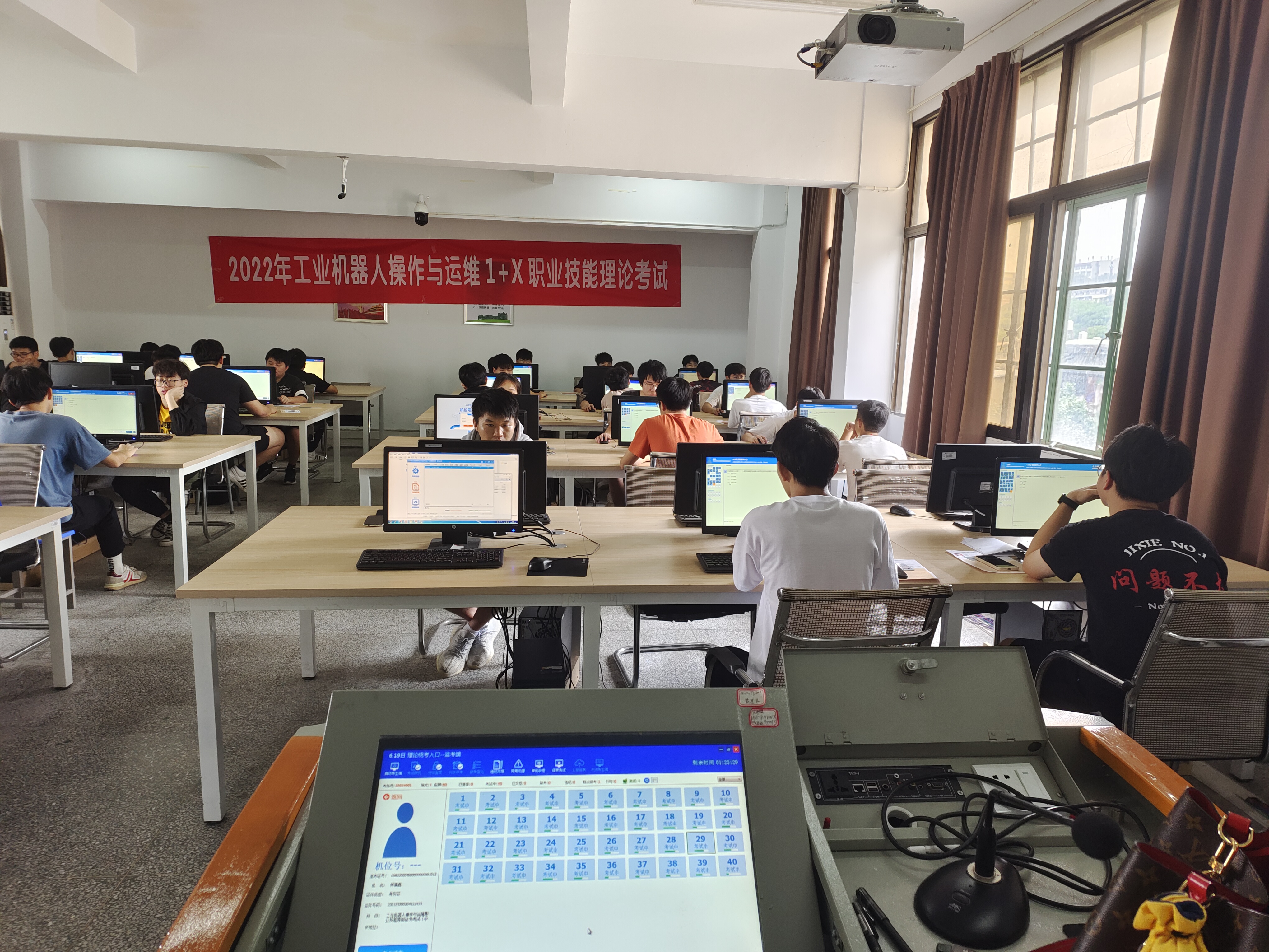 圖1 工業(yè)機(jī)器人操作與運(yùn)維1+X理論考試現(xiàn)場(chǎng)