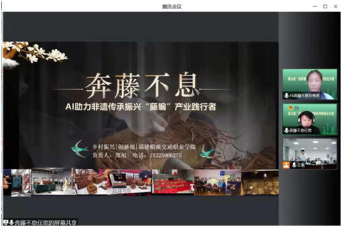 本屆大賽自啟動(dòng)以來(lái),共吸引了全國(guó)5178個(gè)鄉(xiāng)村振興創(chuàng)業(yè)項(xiàng)目報(bào)名參賽。大賽分為初賽、半決賽、決賽等環(huán)節(jié),通過(guò)線(xiàn)上項(xiàng)目資料評(píng)審、現(xiàn)場(chǎng)路演答辯等方式進(jìn)行。我院“《奔藤不息》AI助力非遺‘藤編’產(chǎn)業(yè)振興引領(lǐng)者”項(xiàng)目在張?zhí)煨恰⒍螀怯?、許友孝和雷筱珍老師精心指導(dǎo)下成功入圍現(xiàn)場(chǎng)半決賽,喜獲銀獎(jiǎng)。