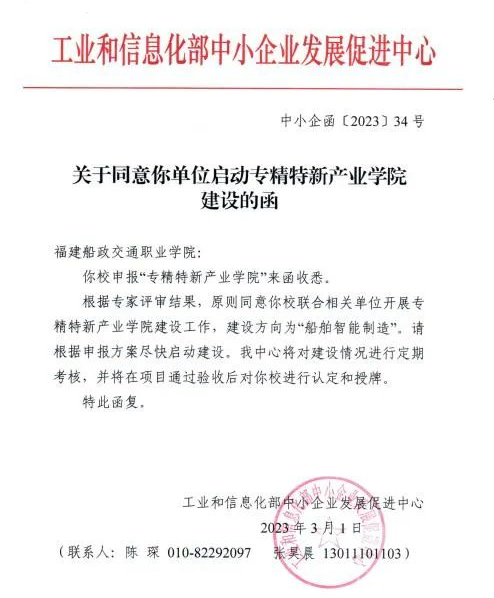 3月1日,工業(yè)和信息化部中小企業(yè)發(fā)展促進中心公布首批“專精特新產(chǎn)業(yè)學院”啟動建設名單,我校申報“船舶智能制造專精特新產(chǎn)業(yè)學院”經(jīng)過歷時半年的初審、線上考察、專家初評、專家會評等4輪競爭性遴選,最終從800多所高校中脫穎而出成功獲批立項建設。此次“專精特新產(chǎn)業(yè)學院”獲批建設,標志著我校在產(chǎn)教融合校企合作提質升級上又邁出了堅實的步伐。