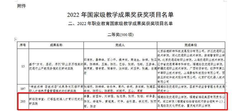7月24日,教育部公布了2022年國家級教學成果獎獲獎項目名單。由我校航海學院主持申報的《新船政學堂:燈塔型航海人才育訓(xùn)范式創(chuàng)新實踐》教學成果獲得二等獎。