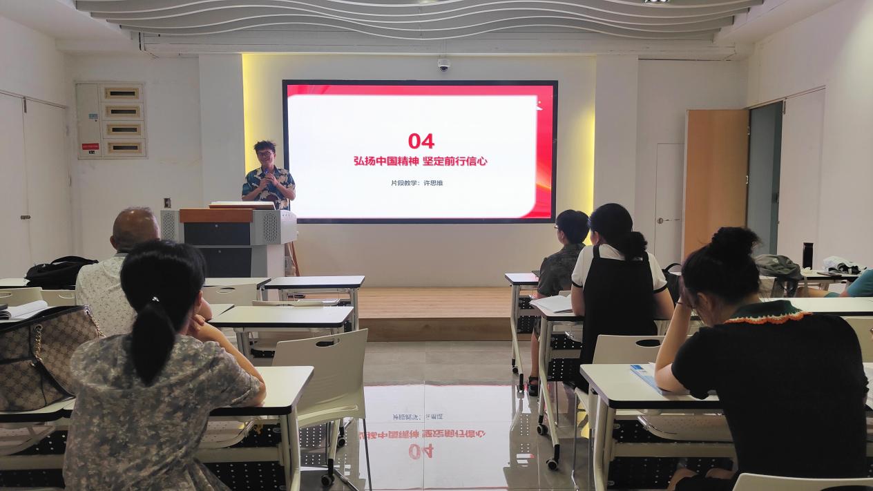 潘倩瀅老師和許思維老師分別針對(duì)“文化自信明顯增強(qiáng)”和“弘揚(yáng)中國(guó)精神 堅(jiān)定前行信心”進(jìn)行了無(wú)生片段教學(xué)。兩位老師教學(xué)設(shè)計(jì)精巧,以貼近學(xué)生生活的案例故事生動(dòng)展示了理論難點(diǎn),取得了參會(huì)教師的一致認(rèn)可。