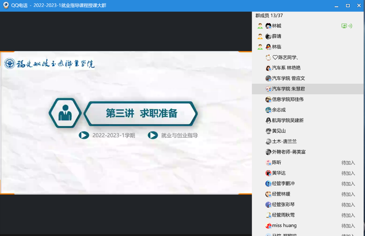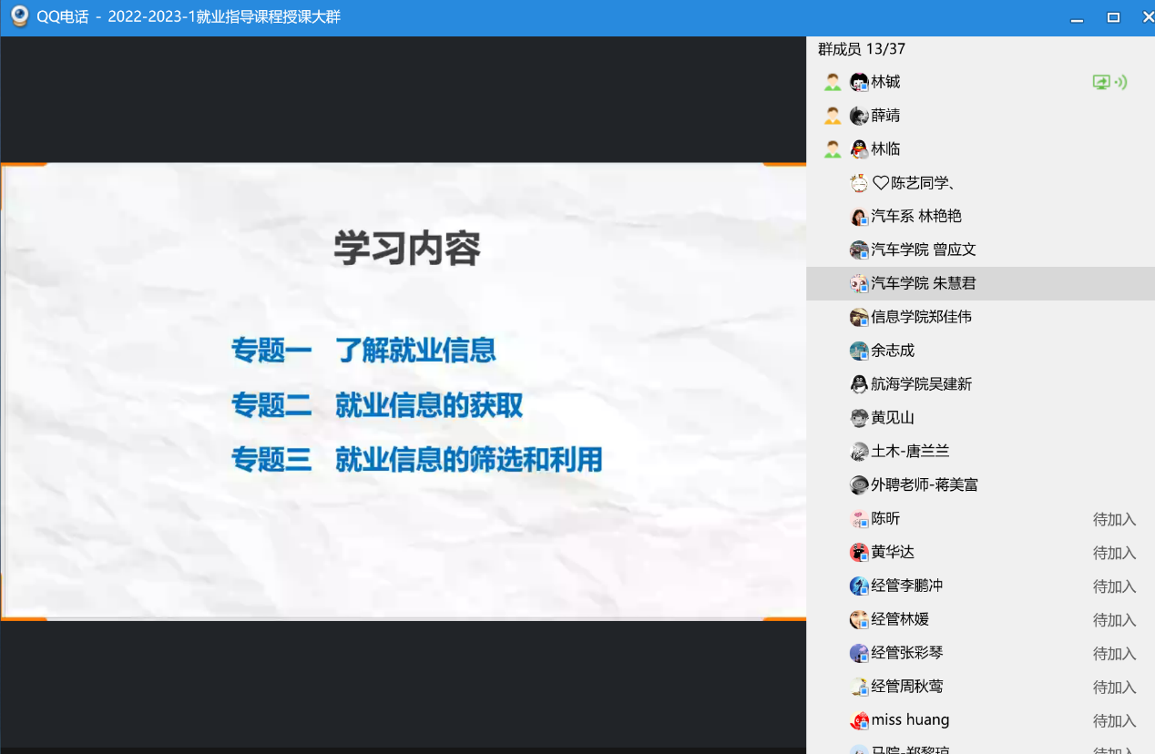 集體備課會(huì)上,主備課教師林鋮老師就《第三講 求職準(zhǔn)備》的主題,依據(jù)課程教學(xué)大綱,就課程目標(biāo)、課程內(nèi)容、授課重點(diǎn)、教案分析、教學(xué)難點(diǎn)、案例融入等問題對(duì)該課程進(jìn)行了梳理,做了課程備課心得體會(huì)分享。本講通過了解就業(yè)信息、就業(yè)信息的獲取、就業(yè)信息的篩選和利用三個(gè)專題的講解,指導(dǎo)學(xué)生了解并掌握就業(yè)信息的收集與篩選方法,避免陷入求職陷阱;認(rèn)識(shí)網(wǎng)上求職,把握網(wǎng)上求職應(yīng)注意的一些問題,正確把握網(wǎng)上求職技巧。