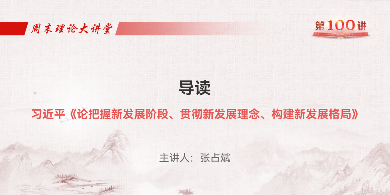 2022年8月5日下午,馬克思主義學(xué)院組織全體教師學(xué)習(xí)周末理論大講堂第100講。第十三屆全國(guó)政協(xié)委員、中央黨校(國(guó)家行政學(xué)院)馬克思主義學(xué)院院長(zhǎng)、教授、博士生導(dǎo)師張占斌從新發(fā)展階段:開(kāi)啟中華民族偉大復(fù)興新征程、新發(fā)展理念:引領(lǐng)高質(zhì)量發(fā)展和高品質(zhì)生活、新發(fā)展格局:構(gòu)建相互促進(jìn)的國(guó)內(nèi)國(guó)際雙循環(huán)和三個(gè)新發(fā)展:中國(guó)特色社會(huì)主義政治經(jīng)濟(jì)學(xué)的最新成果四個(gè)層面對(duì)習(xí)近平《論把握新發(fā)展階段、貫徹新發(fā)展理念、構(gòu)建新發(fā)展格局》為廣大思政教師展開(kāi)全面深刻的理論導(dǎo)讀。