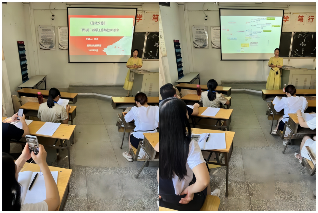 9月22日,馬克思主義學(xué)院船政文化教研室全體專兼職教師在汽車系第一階梯開(kāi)展了“優(yōu)·美”教學(xué)工作坊教研活動(dòng)。本次教研的內(nèi)容是《船政文化》課程第三講,由江冰老師擔(dān)任主講。