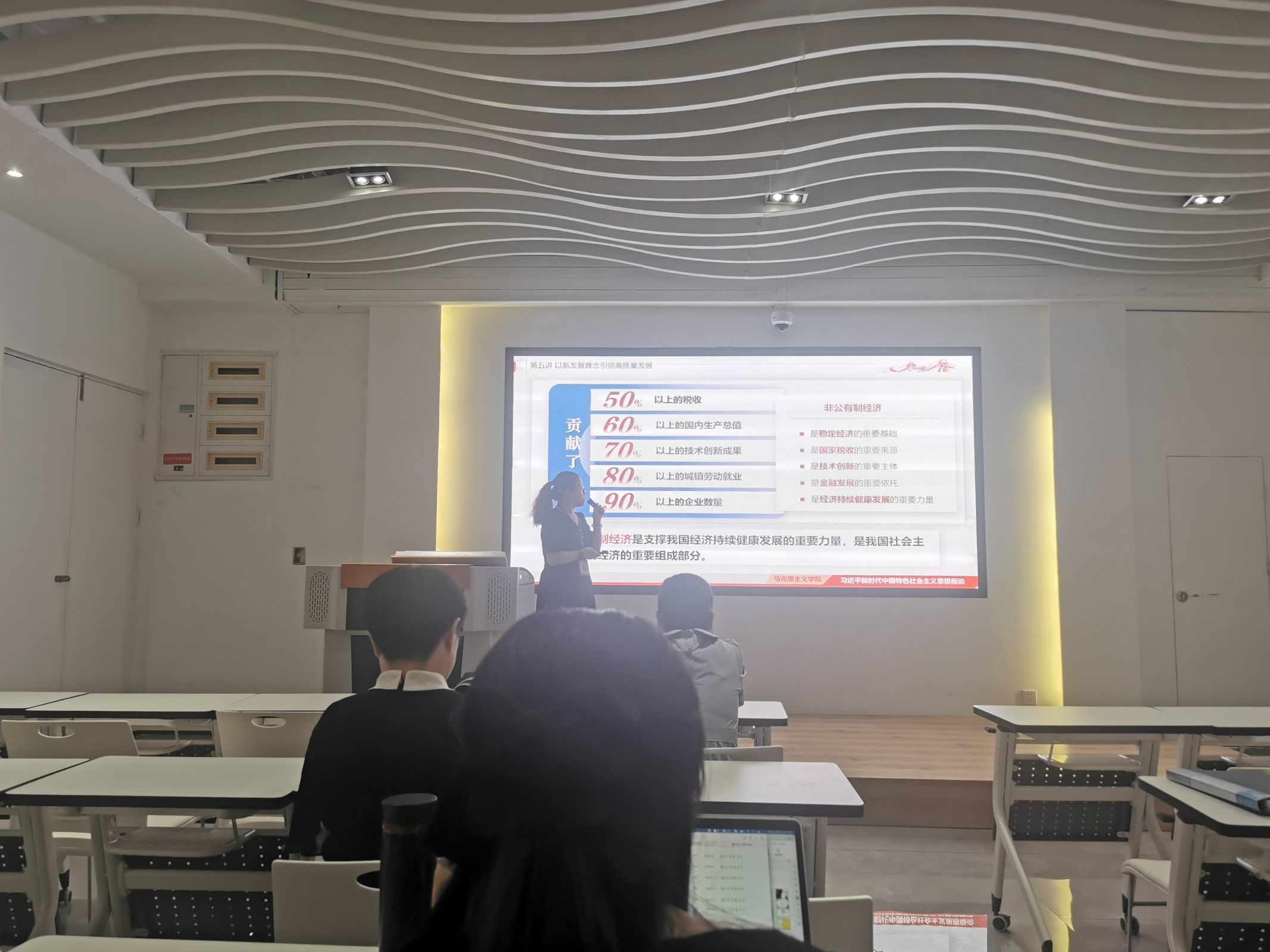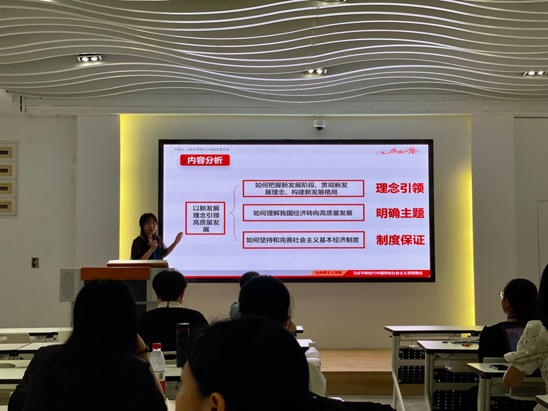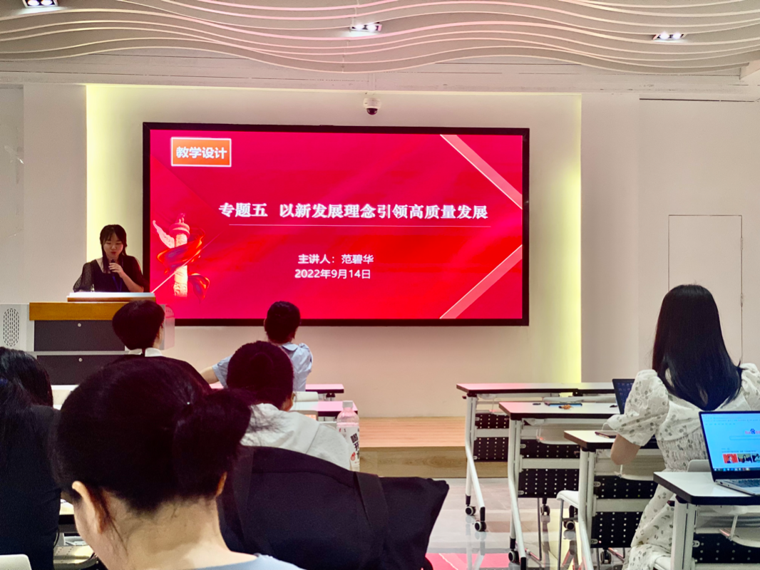 2022年9月14日,馬克思主義學(xué)院“毛澤東思想和中國(guó)特色社會(huì)主義理論體系概論”教研室全體專(zhuān)兼職教師在圖書(shū)館三樓黨建館開(kāi)展了“優(yōu)·美”教學(xué)工作坊教研活動(dòng)。本次教研的內(nèi)容是《習(xí)近平新時(shí)代中國(guó)特色社會(huì)主義思想概論》課的專(zhuān)題五————以新發(fā)展理念引領(lǐng)高質(zhì)量發(fā)展,由范碧華老師擔(dān)任主講。