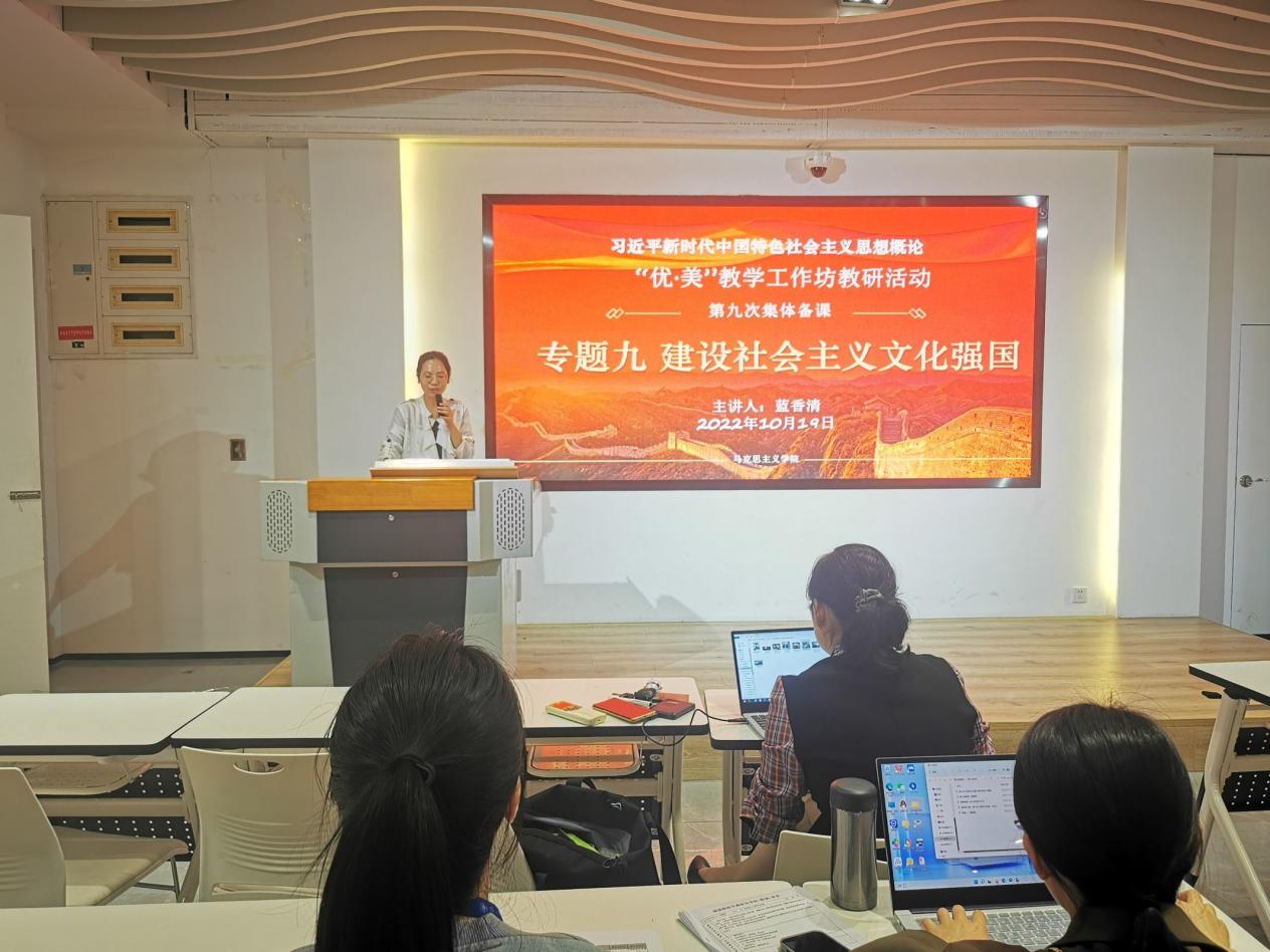 2022年10月19日,馬克思主義學(xué)院毛澤東思想和中國特色社會主義理論體系概論教研室教師開展習(xí)近平新時(shí)代中國特色社會主義思想概論課程專題九的集體備課會。集體備課會以“主備發(fā)言--集體討論--片段教學(xué)--教學(xué)反思整改”為模塊順序進(jìn)行。主備課教師藍(lán)香清老師認(rèn)真學(xué)習(xí)鉆研教學(xué)資料的基礎(chǔ)上,針對本校學(xué)生學(xué)情展開分析。對于建設(shè)社會主義文化強(qiáng)國專題在本課程中所處地位、教學(xué)目標(biāo)、教學(xué)重難點(diǎn)、教學(xué)過程設(shè)計(jì)等方面也說了自己的想法,并在其他老師的補(bǔ)充指導(dǎo)下整改完成了教案。