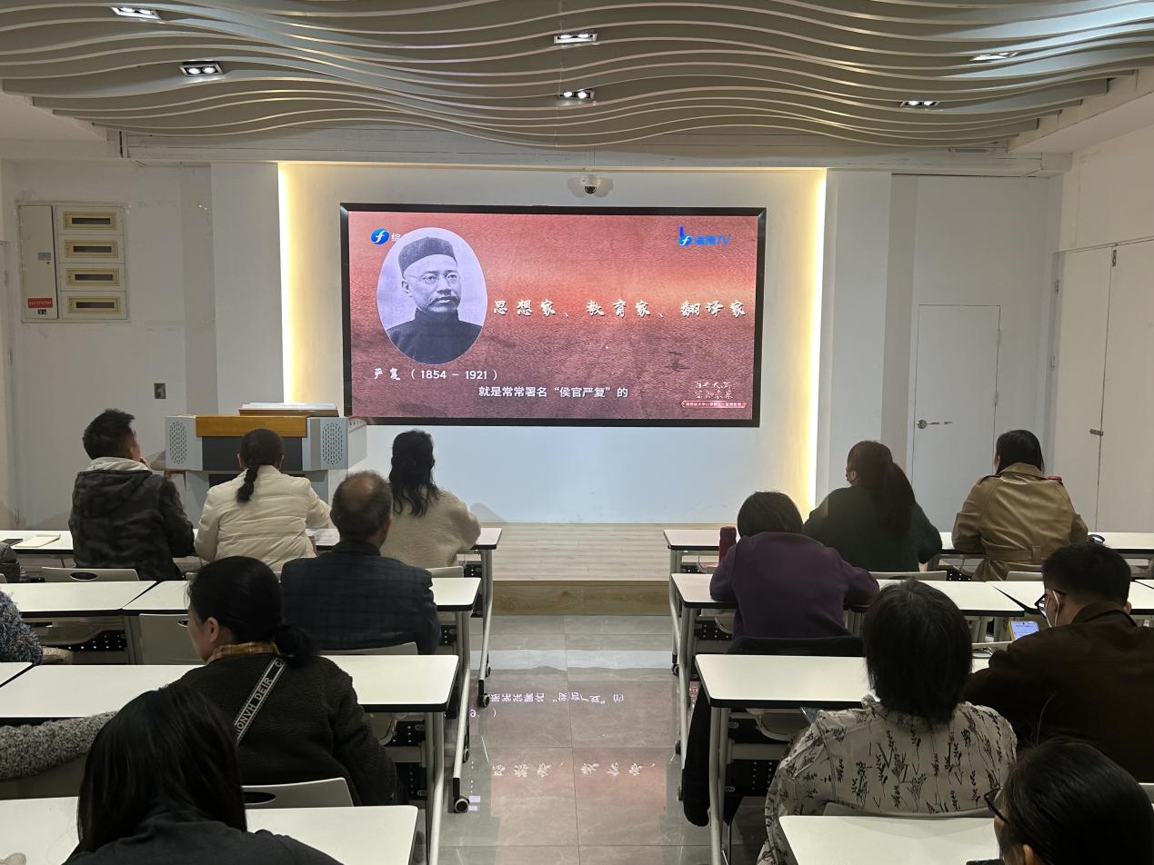 為深入學(xué)習(xí)貫徹習(xí)近平文化思想,紀(jì)念嚴(yán)復(fù)誕辰170周年,2024年1月2日,馬克思主義學(xué)院組織全體思政教師在鑒知樓時(shí)代大講堂開展由省委宣傳部、省委教育工委和省教育廳聯(lián)合主辦的“百年天演 鑒知未來——福建省大中小學(xué)同上一堂思政課”主題學(xué)習(xí)活動。
