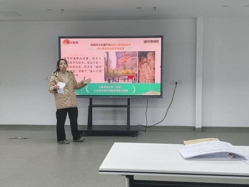 何維康老師和余夢莉老師分別對“文化遺產(chǎn)的傳承和保護”“在創(chuàng)造性轉(zhuǎn)化和創(chuàng)新性發(fā)展中賡續(xù)中華文脈”進行片段展示,引導學生從身邊文化現(xiàn)象入手,深入思考文化強國的意義與路徑。