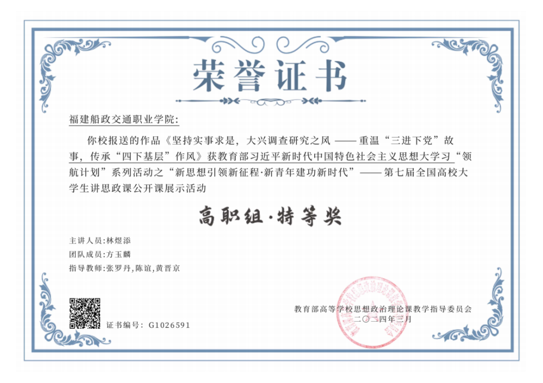 在第七屆高校大學(xué)生講思政課公共課展示活動(dòng)中獲高職組特等獎(jiǎng)