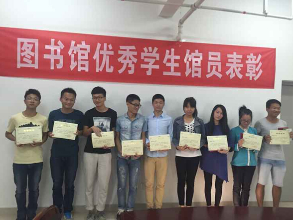 隨后,主持人宣布2014-2015年度圖書館“優(yōu)秀學生館員”的獲獎名單,并由圖書館館長為 10位獲獎者頒發(fā)了榮譽證書和獎品。