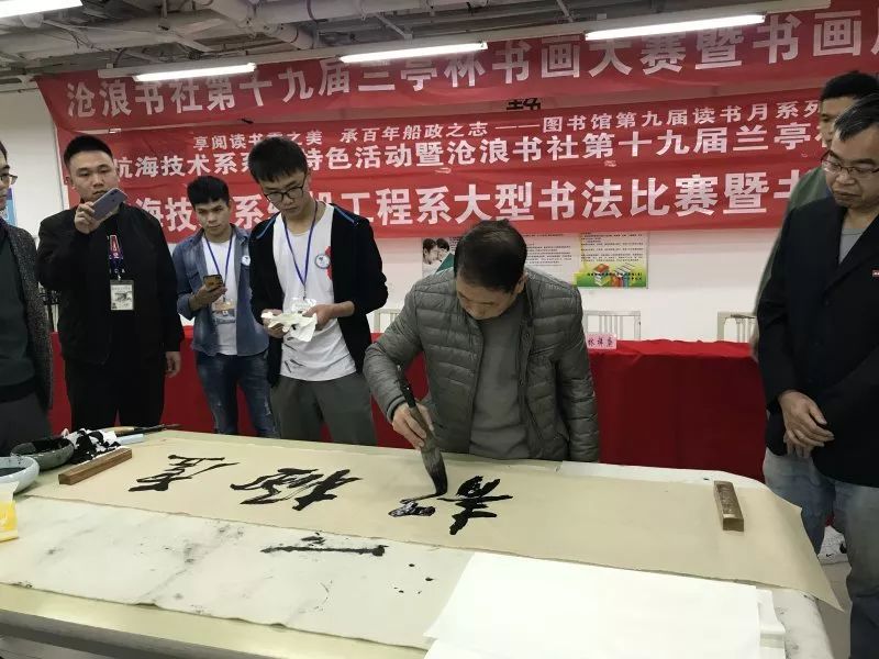 3月30號上午,航海技術(shù)系組織全系師生及書法愛好者開展了“享閱讀書香之美,承百年船政之志”——圖書館第九屆讀書月系列活動之航海技術(shù)系系部特色活動暨滄浪書社第十九屆蘭亭杯書法展印展及書法大賽。活動在圖書館一樓自習(xí)室舉辦。本次活動邀請了輪機(jī)工程系主任陳清彬老師、林祥庚老師、航海技術(shù)系團(tuán)總支林杰老師及后勤處老師謝小煌。