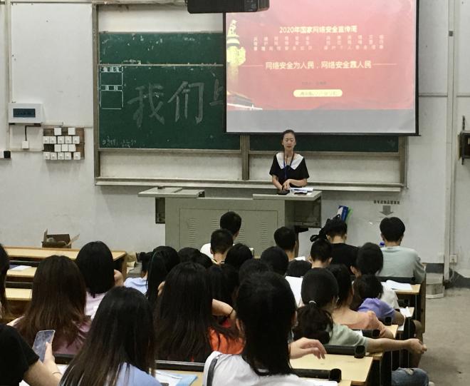 二是開展了“網(wǎng)絡(luò)安全為人民, 網(wǎng)絡(luò)安全靠人民”主題班會。班會課上輔導員們利用PPT提醒同學們怎樣正確對待網(wǎng)絡(luò)交友,文明使用網(wǎng)絡(luò)用語。引導學生觀看相關(guān)視頻,利用具體的事例,讓學生們了解沉迷網(wǎng)絡(luò)有哪些害處,從而讓學生明白怎樣健康文明綠色上網(wǎng),及合理使用網(wǎng)絡(luò)。告誡學生網(wǎng)癮的危害、教會如何防范U盤、移動硬盤泄密,簡單了解《網(wǎng)絡(luò)安全法》。