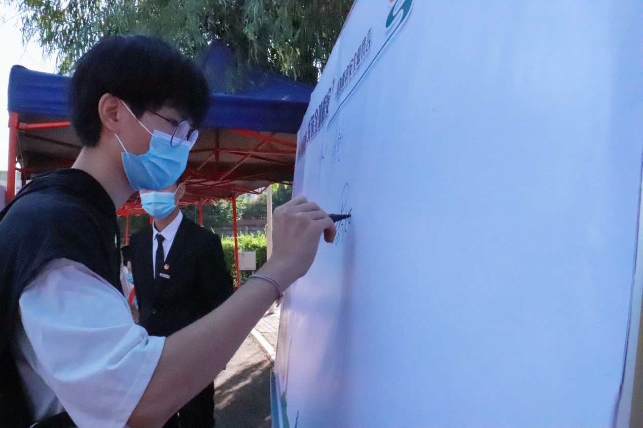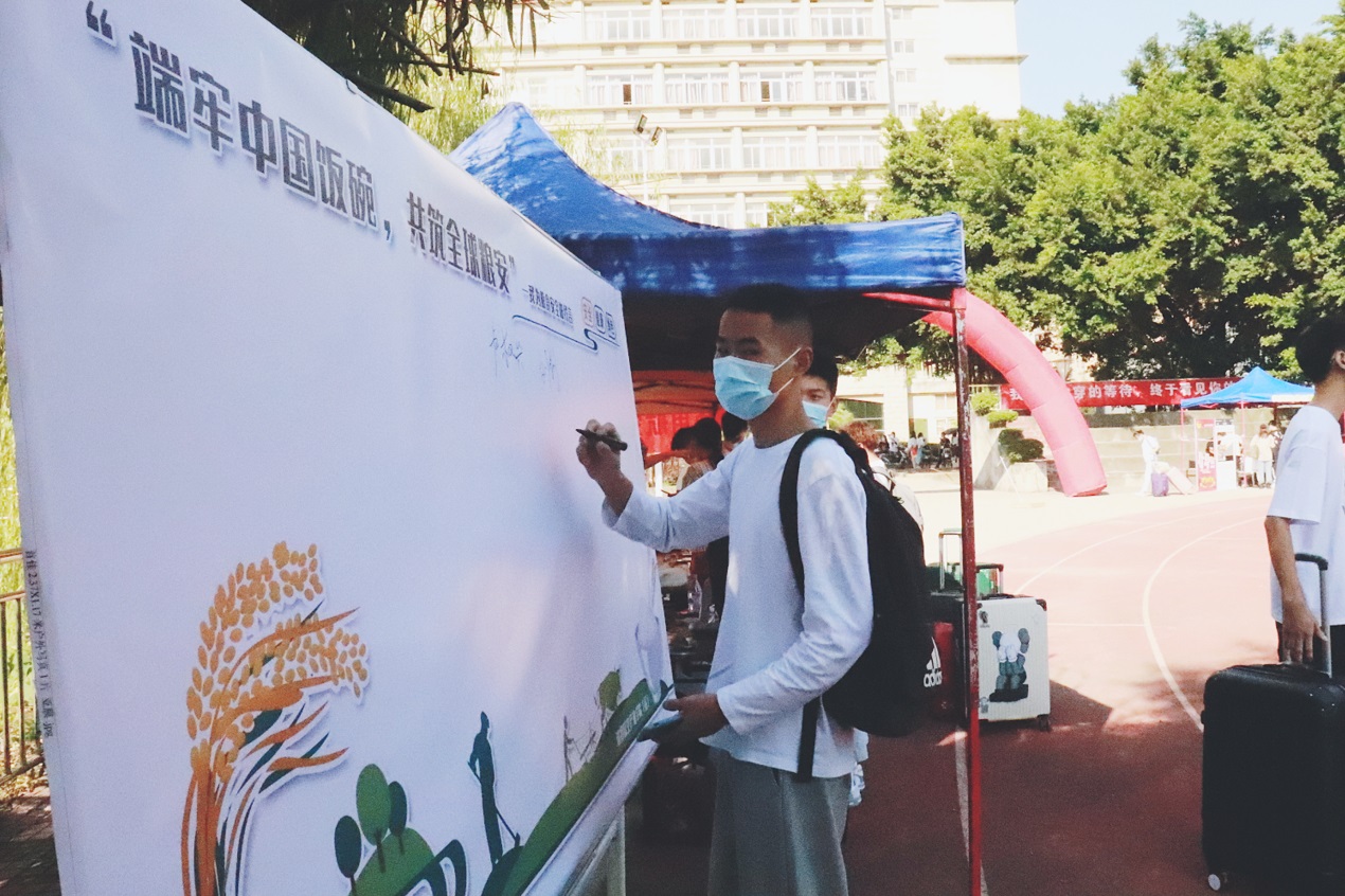 新生在“端牢中國飯碗,共筑全球糧安”簽名墻上簽名