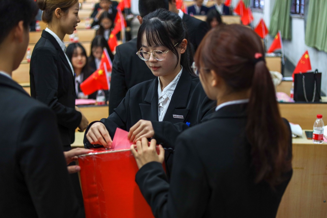 隨后,大會選舉新一屆學(xué)生會主席團,大會本著民主、公開、公正的原則,采用無記名差額選舉的投票方式選舉,通過選舉李彥鵬、翁杰宇、蔡意珍為第一次學(xué)生代表大會的學(xué)生會主席團。