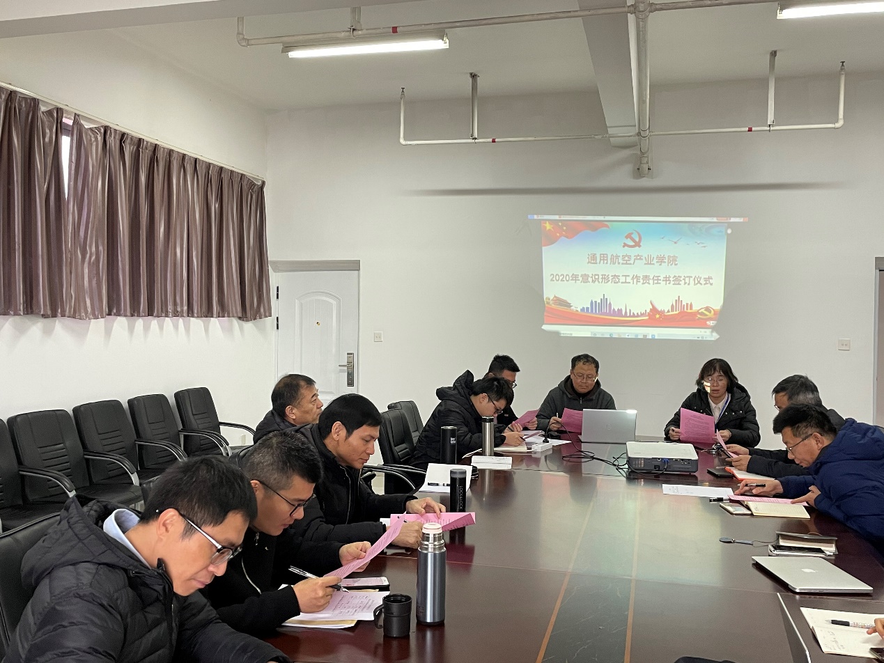 最后,副院長王顯彬帶領(lǐng)大家學(xué)習(xí)、簽訂了《通用航空產(chǎn)業(yè)學(xué)院2020年意識(shí)形態(tài)工作責(zé)任書》。