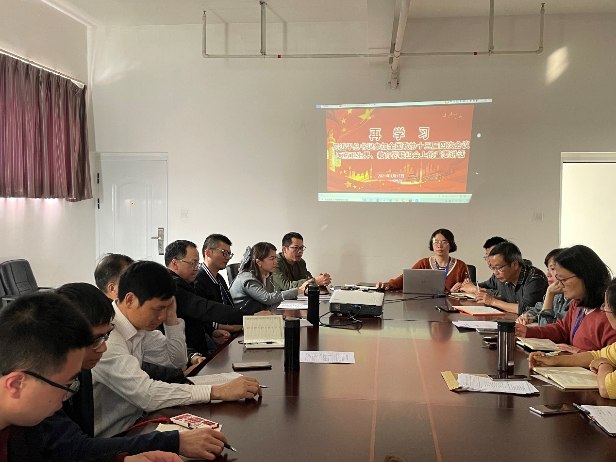 2021年3月17日,通用航空產(chǎn)業(yè)學院召開專題會議,學習貫徹3月6日習近平總書記看望參加全國政協(xié)十三屆四次會議的醫(yī)藥衛(wèi)生界、教育界委員時的重要講話精神。黨總支副書記蘇漢美主持會議。
