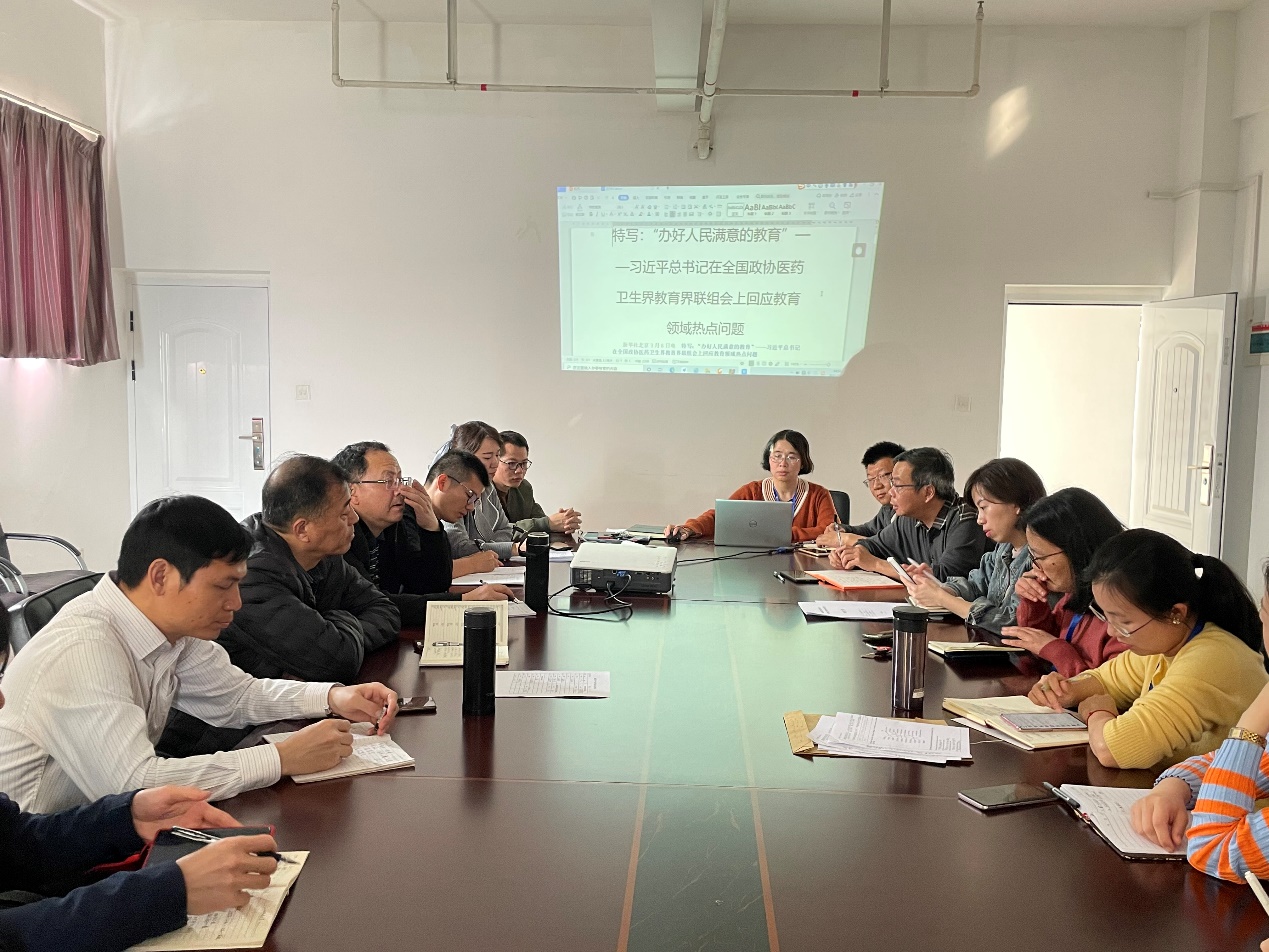 學習會緊扣“把保障人民健康放在優(yōu)先發(fā)展的戰(zhàn)略位置著力構建優(yōu)質均衡的基本公共教育服務體系”主題,從“高質量教育體系”“立德樹人”“國之大計、黨之大計”“為黨育人、為國育才”等關鍵詞,與會人員認真學習了習近平總書記在看望參加全國政協(xié)會議的醫(yī)藥衛(wèi)生界教育界委員時的講話精神。