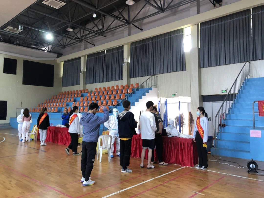 本次志愿服務(wù)內(nèi)容主要是協(xié)助核酸檢測(cè)工作人員做好核酸檢測(cè)工作,現(xiàn)場(chǎng)維護(hù)同學(xué)們秩序,維持檢測(cè)人員保持一米距離,引導(dǎo)同學(xué)們有序參與,做到不聚集、不扎堆。在文體中心核酸檢測(cè)點(diǎn)每個(gè)角落,都可以看見志愿者身上醒目的貼著“我是黨員、入黨積極分子、沖鋒在前”的忙碌身影。為民服務(wù),傳遞溫暖笑容,志愿者加入到核酸檢測(cè)工作中來,使得學(xué)校全員核酸檢測(cè)工作按下了快捷鍵。