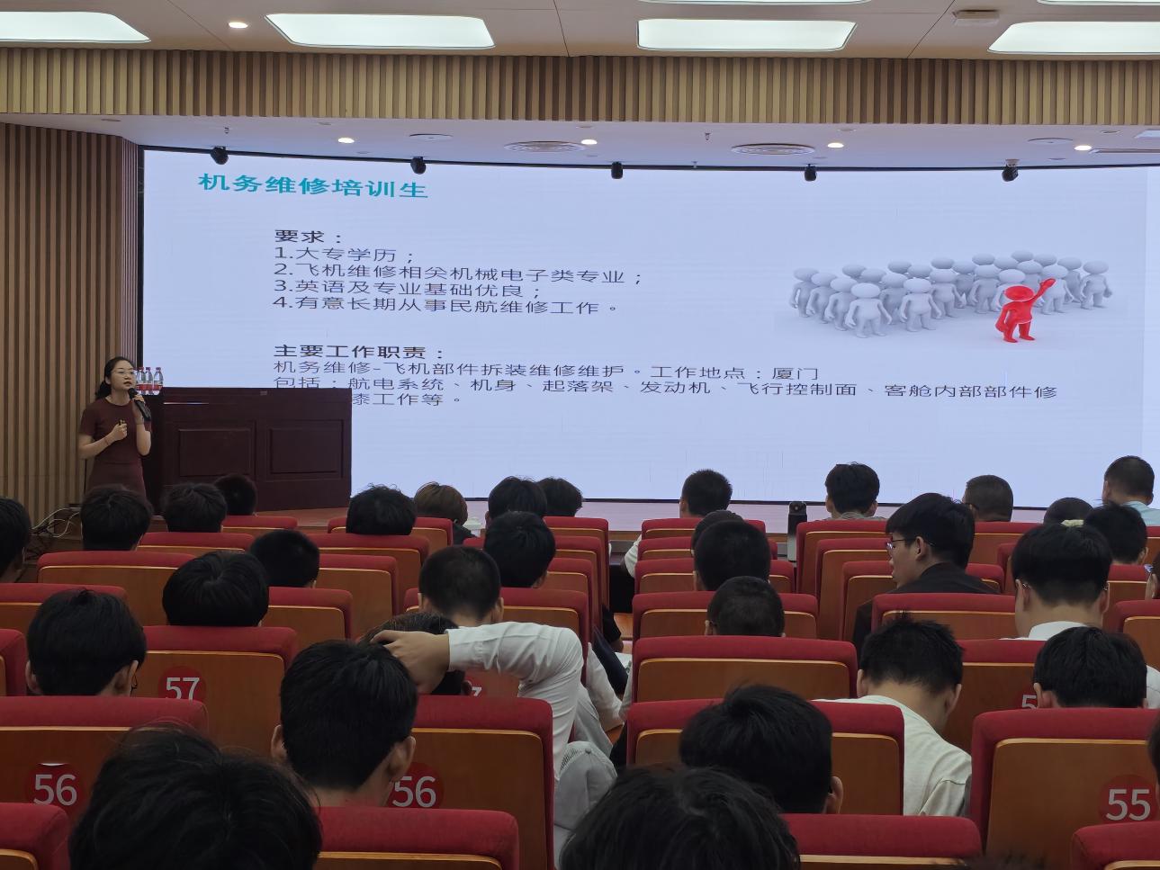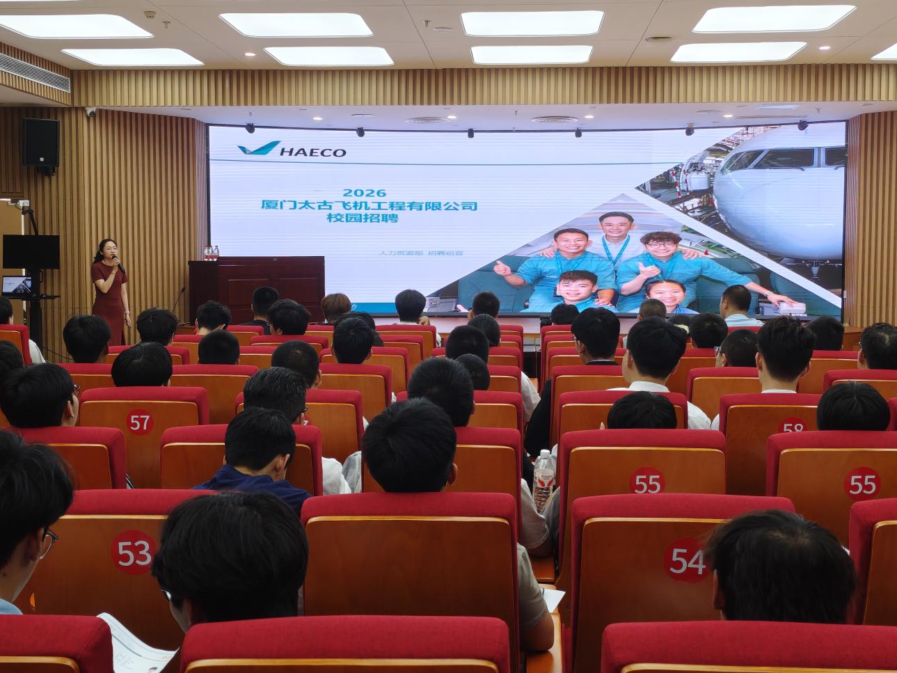 8月13日上午,本場招聘活動(dòng)以企業(yè)宣講正式拉開序幕。來自廈門太古飛機(jī)工程有限公司人事部門的周老師通過PPT展示、現(xiàn)場互動(dòng)等形式,向在場學(xué)生全面介紹了公司的發(fā)展歷程、核心業(yè)務(wù)、行業(yè)地位及未來戰(zhàn)略規(guī)劃,重點(diǎn)解讀了本次招聘崗位的職責(zé)要求、薪資福利與職業(yè)發(fā)展路徑。