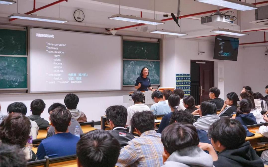 隨后,陳瑞娟老師呈現(xiàn)了一堂精彩課程。她從基礎(chǔ)語法講到詞根構(gòu)詞法,通過“Transportation”等實(shí)例,幫助學(xué)生在理解句子結(jié)構(gòu)的基礎(chǔ)上掌握詞匯記憶規(guī)律。同學(xué)們在活躍的課堂氣氛中實(shí)現(xiàn)了知識(shí)的融會(huì)貫通。