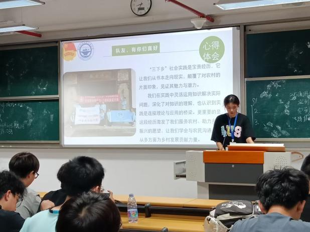 活動中,“三下鄉(xiāng)”團(tuán)隊成員通過PPT展示、視頻分享等形式,生動講述了在四市四縣開展實踐的點滴。他們分享了在鄉(xiāng)村基層運用專業(yè)知識解決實際問題的經(jīng)歷,在實踐中靈活運用知識解決實踐問題,深化對知識的理解,也認(rèn)識到實踐是連接理論與應(yīng)用的橋梁,更重要的是這段經(jīng)歷激發(fā)我們服務(wù)農(nóng)村,助力鄉(xiāng)村振興的愿望,學(xué)會與農(nóng)民溝通從多方面為鄉(xiāng)村發(fā)展貢獻(xiàn)力量,也講述了與農(nóng)民群眾深入溝通、助力鄉(xiāng)村振興的暖心故事。在互動環(huán)節(jié),團(tuán)隊成員們還結(jié)合37人團(tuán)隊的協(xié)作經(jīng)驗,為新生答疑解惑,提出了許多實用的成長建議。