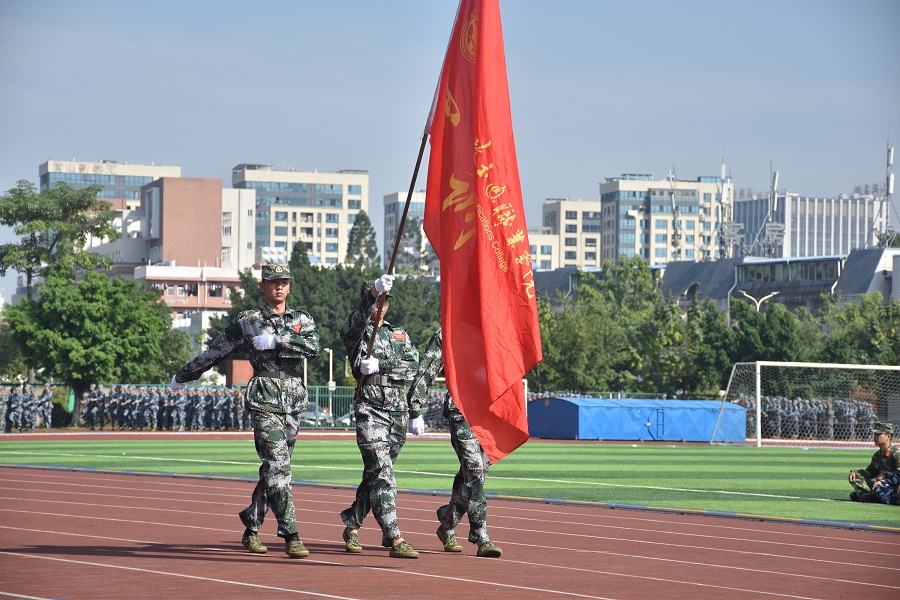 2017級(jí)學(xué)生身著軍訓(xùn)服裝,在軍訓(xùn)旗的引領(lǐng)下,踏著分列式進(jìn)行曲的鼓點(diǎn),步伐整齊、精神高昂、口號(hào)響亮地走向主席臺(tái)接受領(lǐng)導(dǎo)來(lái)賓的檢閱。緊接著,擒敵拳方陣、格斗術(shù)方陣、單個(gè)軍人隊(duì)列動(dòng)作方陣給大家呈現(xiàn)了氣勢(shì)如虹的精彩表演,他們動(dòng)作規(guī)范、英勇果敢,贏得了全場(chǎng)的陣陣掌聲。