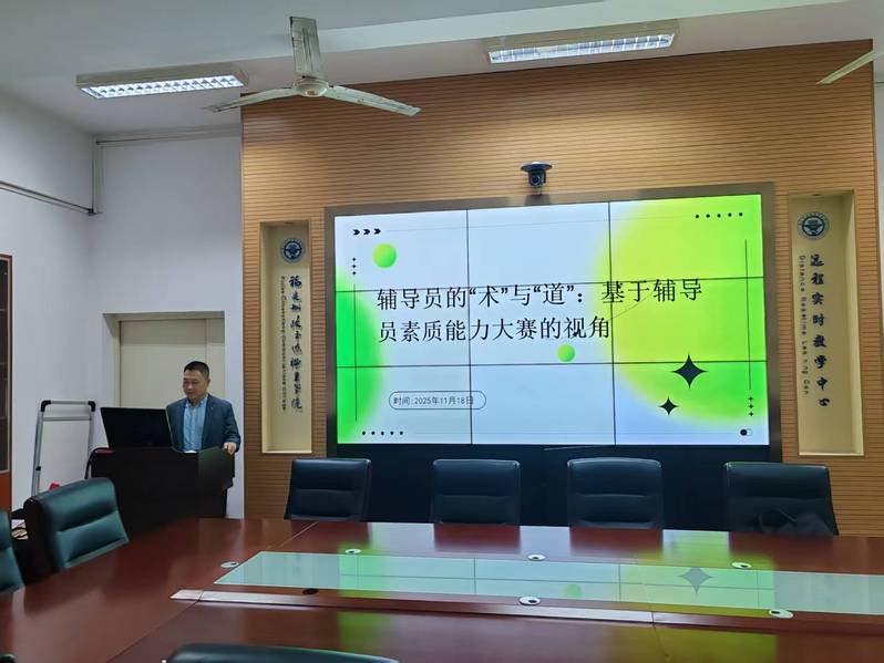 為加強(qiáng)我院輔導(dǎo)員隊伍建設(shè),提升新入職教師的職業(yè)素養(yǎng)與工作能力,2025年11月18日下午在自強(qiáng)樓2-1教室舉辦《淺談輔導(dǎo)員的“術(shù)”與“道”:基于輔導(dǎo)員素質(zhì)能力大賽的視角》專題講座,特邀福建師范大學(xué)校團(tuán)委副書記、學(xué)工部副部長樂有方擔(dān)任主講嘉賓。