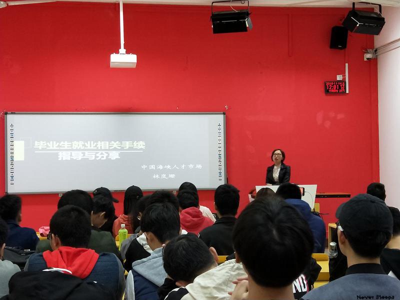 信息工程系于2018年11月14日中午12:00至下午13:00在北區(qū)2#1-5舉辦了信息工程系“畢業(yè)生就業(yè)指導(dǎo)與分享”講座,由中國海峽人才市場林嵐珊小姐主講。林小姐講到當(dāng)前畢業(yè)生就業(yè)的幾大問題以及相關(guān)解決方法,說到畢業(yè)生就業(yè)的五個關(guān)鍵詞:1.檔案2.就業(yè)協(xié)議書3.報(bào)到證4.黨組織關(guān)系5.戶口遷移證。
