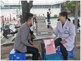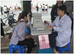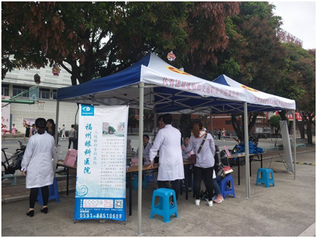 講座結(jié)束后,來自眼科醫(yī)院的醫(yī)生在文化墻為師生提供免費眼科體檢和眼部健康知識宣傳活動,義診檢查的內(nèi)容主要包括視力表測試、專業(yè)檢測機器,宣講用眼、護眼、預防眼病知識,提高師生用眼健康意識。學校70多名師生參加體檢。義診現(xiàn)場向師生發(fā)放了眼科疾病預防、眼部保健等宣傳資料手提袋80多份。