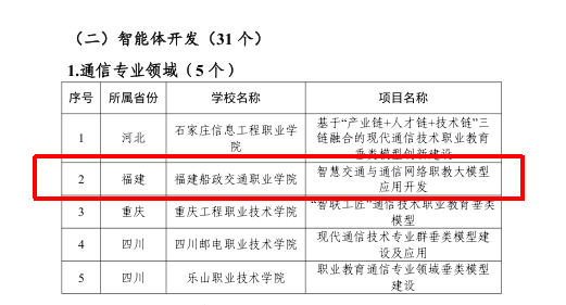 近日,教育部職業(yè)教育發(fā)展中心公布了“職業(yè)教育專業(yè)領(lǐng)域垂類模型建設(shè)項(xiàng)目(第一批)”入選名單,由信息與智慧交通學(xué)院團(tuán)隊(duì)申報(bào)的“智慧交通與通信網(wǎng)絡(luò)職教大模型應(yīng)用開發(fā)”項(xiàng)目成功入選,成為通信專業(yè)領(lǐng)域重點(diǎn)建設(shè)項(xiàng)目之一。