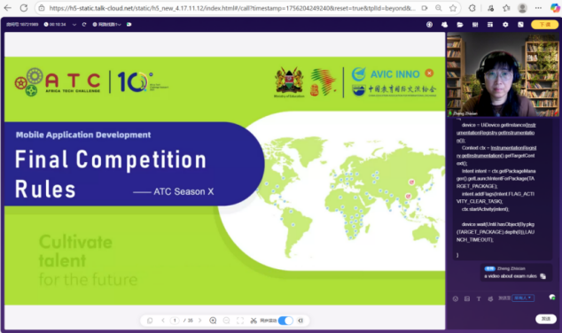 歷經(jīng)一月密集培訓(xùn),移動應(yīng)用開發(fā)賽項決賽成功舉辦,來自肯尼亞、埃及、加納、烏干達、坦桑尼亞、贊比亞、津巴布韋7個國家的56支隊伍、224名師生盡展所學(xué)、佳績頻傳。中航國際成套設(shè)備有限公司在感謝信中高度評價:“鄭志嫻、李伙欽兩位老師耐心授課、悉心指導(dǎo),以及黃鴻杰等5位同學(xué)組成的線上學(xué)員管理團隊克服時差認真負責(zé),受到廣大學(xué)員喜愛和歡迎。