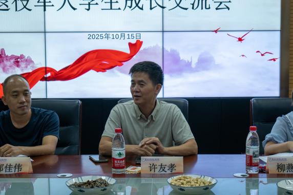 活動開始,學(xué)院黨總支書記許友孝率先發(fā)言,他向在場退役軍人學(xué)生致以崇高敬意,肯定其在軍旅生涯中錘煉的紀(jì)律意識、責(zé)任擔(dān)當(dāng)與堅(jiān)韌品格,強(qiáng)調(diào)這些品質(zhì)既是軍旅榮譽(yù),更是校園與未來發(fā)展的“精神財(cái)富”。隨后,學(xué)院黨總支副書記柳燕妮結(jié)合學(xué)院人才培養(yǎng)目標(biāo),聚焦退役軍人學(xué)生的校園適應(yīng)需求,鼓勵(lì)大家將部隊(duì)優(yōu)良作風(fēng)融入學(xué)習(xí)生活,主動調(diào)整身份轉(zhuǎn)變節(jié)奏,并明確學(xué)院將作為堅(jiān)實(shí)后盾,為其提供精準(zhǔn)支持、助力成長突破。