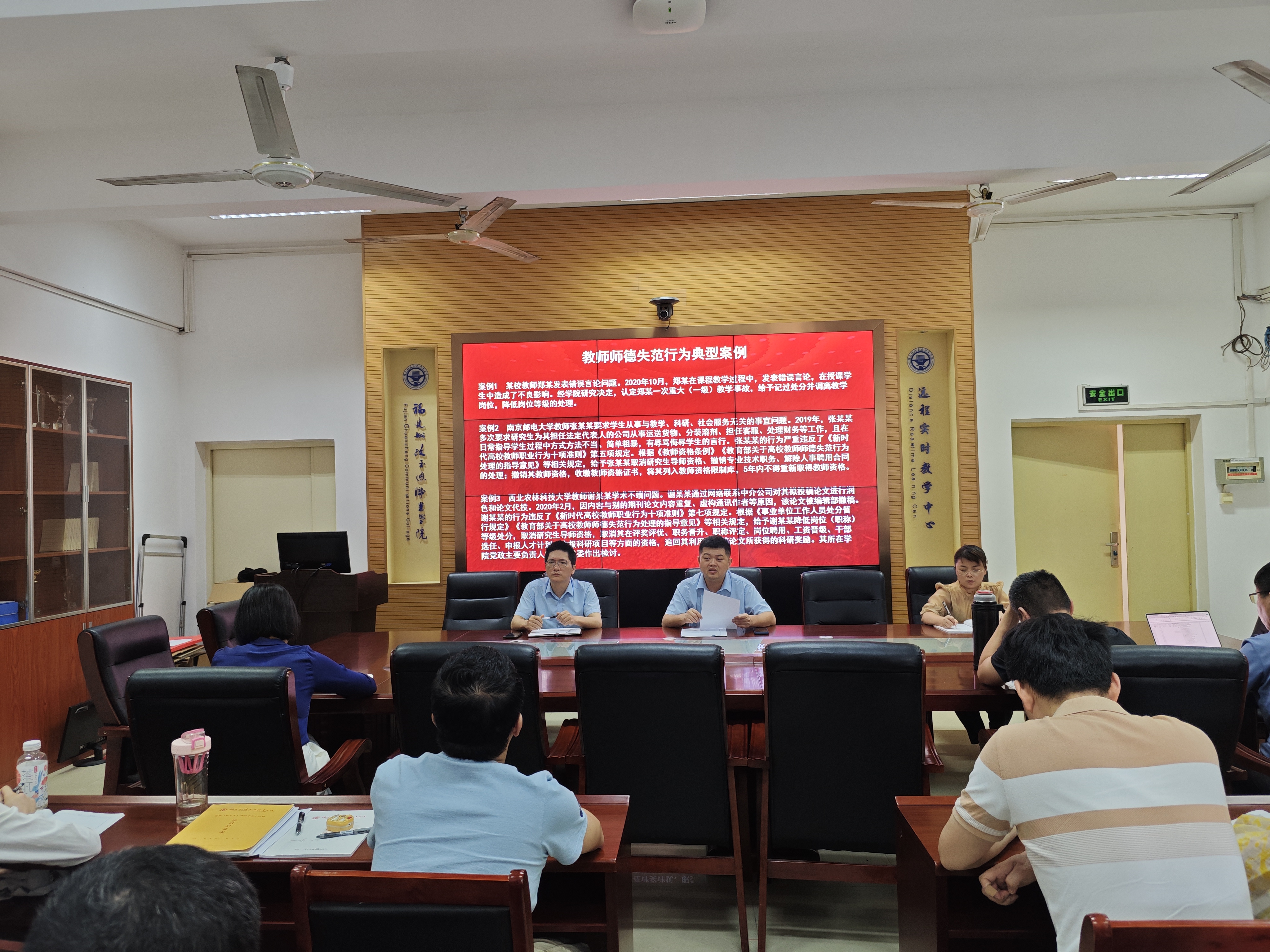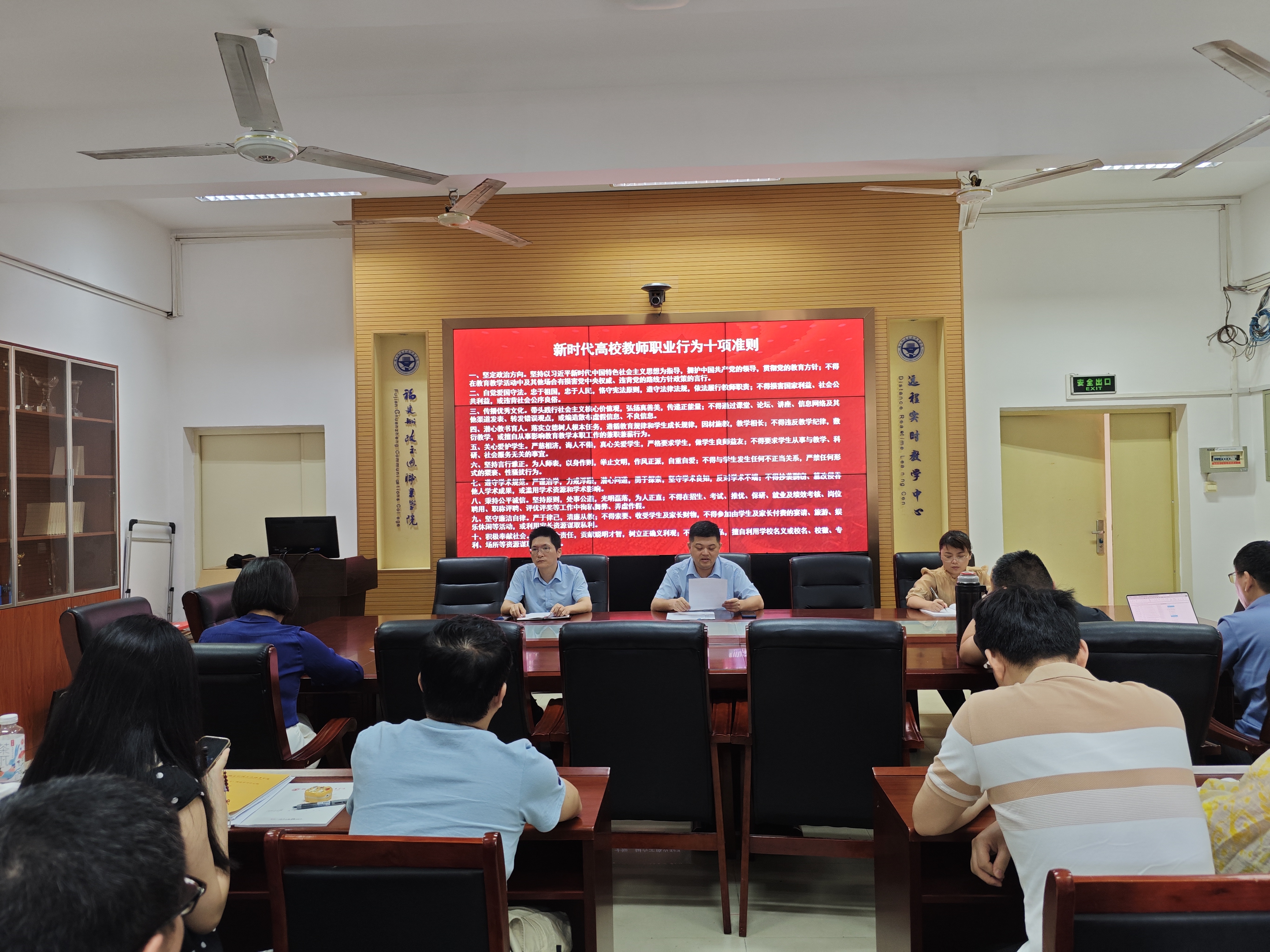 全體教職工集中學(xué)習(xí)《新時(shí)代高校教師職業(yè)行為十項(xiàng)準(zhǔn)則》,通過(guò)逐條解讀準(zhǔn)則內(nèi)涵,強(qiáng)化底線意識(shí)與責(zé)任擔(dān)當(dāng)。并結(jié)合師德失范行為典型案例展開(kāi)深刻剖析,以真實(shí)案例為鏡鑒,警示教職工堅(jiān)守職業(yè)規(guī)范,杜絕學(xué)術(shù)不端、言行失當(dāng)?shù)葐?wèn)題。會(huì)上林少丹指出,學(xué)院正在開(kāi)展黨紀(jì)學(xué)習(xí)教育,要以黨紀(jì)學(xué)習(xí)教育引領(lǐng)師德師風(fēng)建設(shè),要把黨紀(jì)學(xué)習(xí)教育的內(nèi)容和要求體現(xiàn)到教師教學(xué)科研實(shí)際工作中去。全體教師要學(xué)習(xí)好、貫徹好、落實(shí)好習(xí)近平總書(shū)記關(guān)于教師隊(duì)伍建設(shè)的重要指示批示精神,時(shí)刻樹(shù)立“躬耕教壇,強(qiáng)國(guó)有我”的志向和抱負(fù),恪守教師職業(yè)行為準(zhǔn)則,潛心教書(shū)育人。謹(jǐn)記“四有好老師”“四個(gè)引路人”“四個(gè)相統(tǒng)一”標(biāo)準(zhǔn),積極發(fā)揮表率作用,以實(shí)際行動(dòng)共同營(yíng)造風(fēng)清氣正的育人環(huán)境。