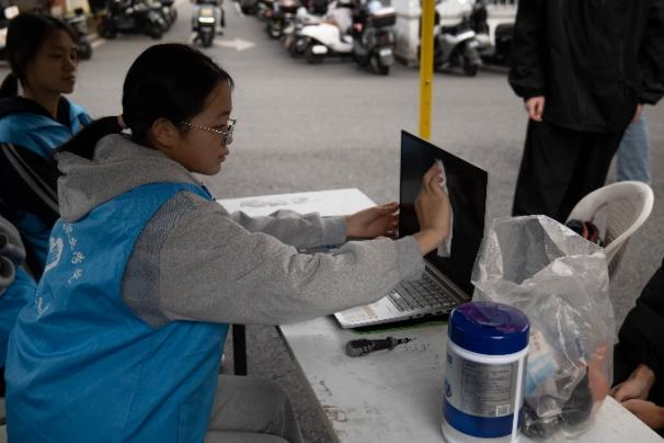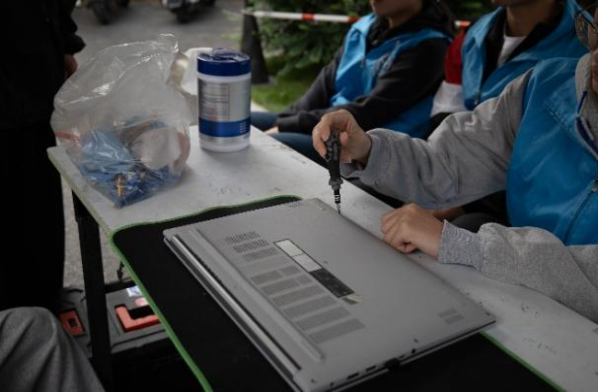 本次活動在信息技術(shù)服務(wù)基礎(chǔ)上,精準對接同學(xué)們的日常需求,增設(shè)了電子產(chǎn)品續(xù)航保養(yǎng)服務(wù)及圍繞電腦日常養(yǎng)護的科普宣講環(huán)節(jié)。志愿者通過拆解筆記本電腦,講解了電池老化的常見誘因,分享了避免長時間滿電存放、不在高溫環(huán)境充電、減少邊充邊用頻率等實用技巧,同時著重強調(diào)設(shè)備防塵與散熱要點,從源頭降低灰塵堆積引發(fā)的故障風險,助力同學(xué)們延長電子產(chǎn)品使用壽命。
