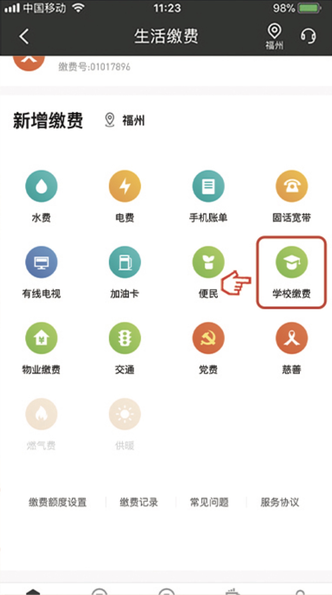 點(diǎn)擊“學(xué)校繳費(fèi)”