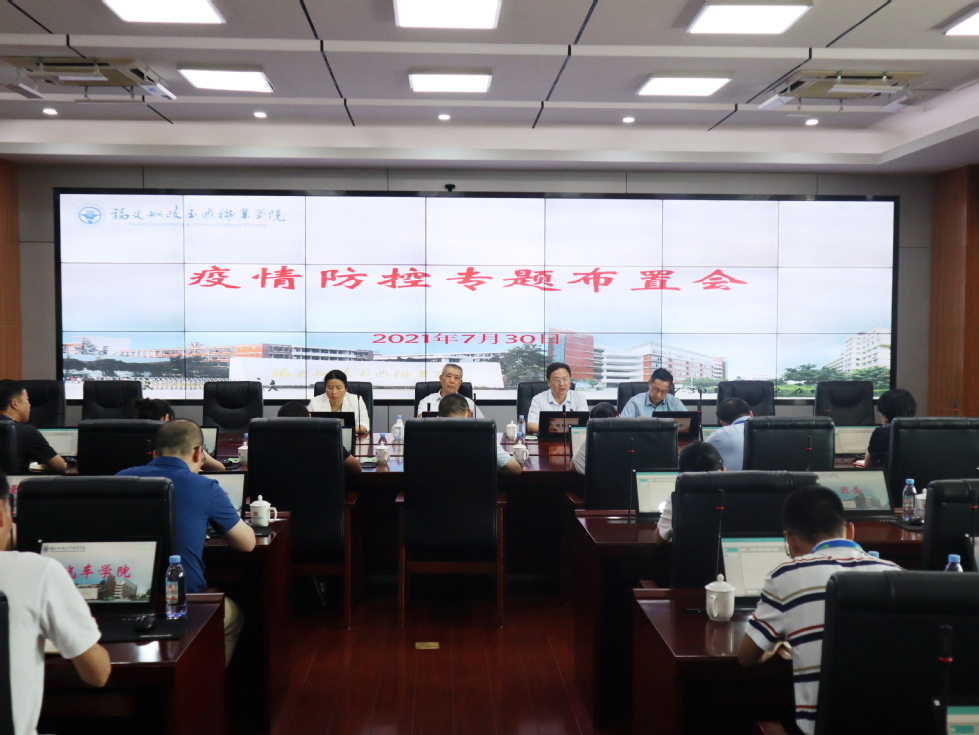 7月30日,學(xué)院召開疫情防控工作布置會(huì)。黨委副書記、院長陳錦輝主持會(huì)議,黨委書記張海明、紀(jì)委書記張輝、副院長張祖柱,各部門、二級(jí)學(xué)院負(fù)責(zé)人出席會(huì)議。