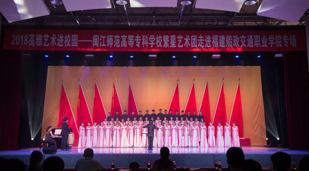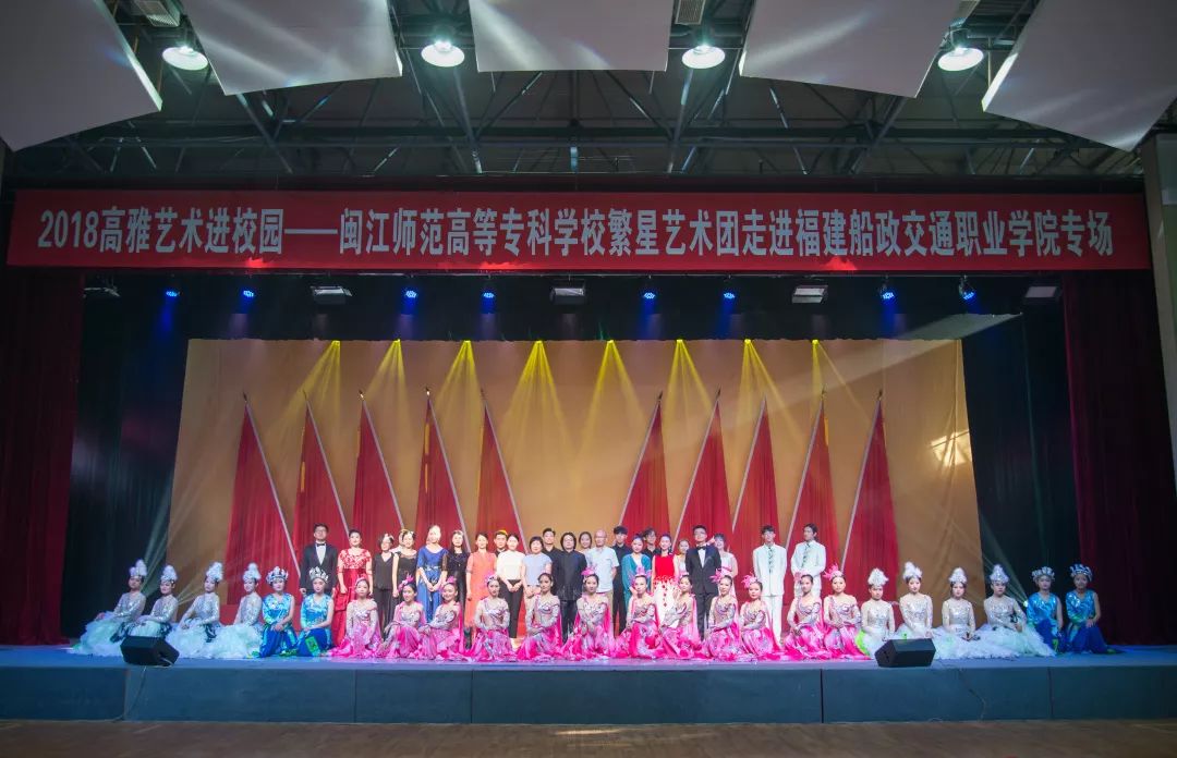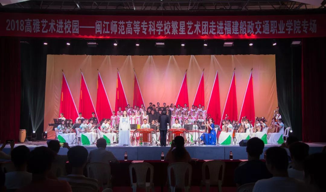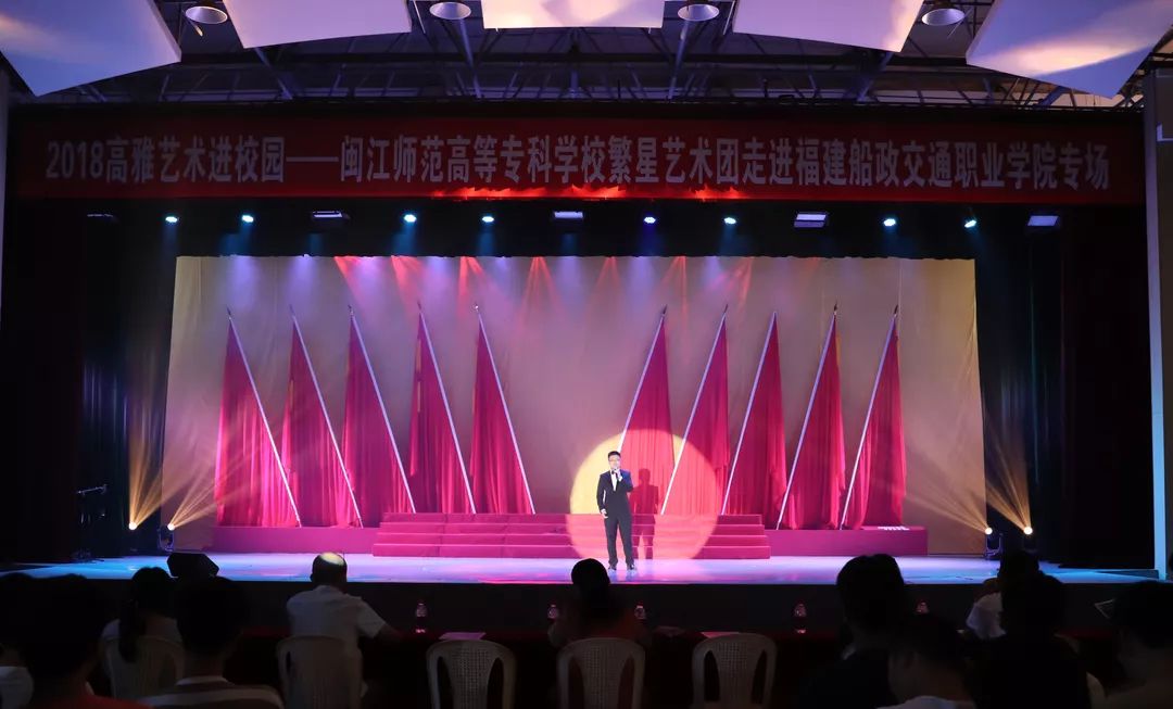 9月26日14:30,“閩江師范高等??茖W(xué)校繁星藝術(shù)團(tuán)走進(jìn)福建船政交通職業(yè)學(xué)院專場”在我校文體中心舉行。