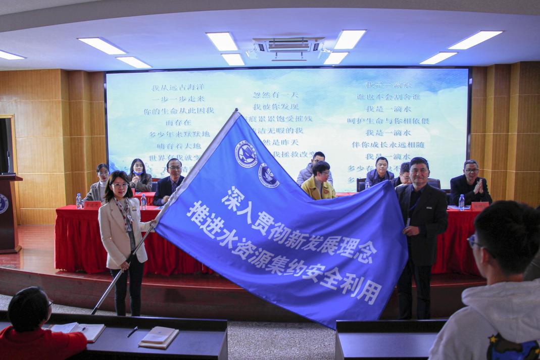 啟動(dòng)儀式上,由青年團(tuán)員代表陳林琳同學(xué)宣讀了《節(jié)水倡議書(shū)》,全體同學(xué)起立齊唱歌曲《我是一滴水》。同時(shí),福建船政交通職業(yè)學(xué)院副院長(zhǎng)高汝武為安全與環(huán)境學(xué)院舉行了授旗儀式,通過(guò)莊嚴(yán)的儀式,向大家鄭重宣告此次活動(dòng)的意義,倡導(dǎo)踐行綠色環(huán)保精神,切實(shí)推進(jìn)水資源集約安全利用。