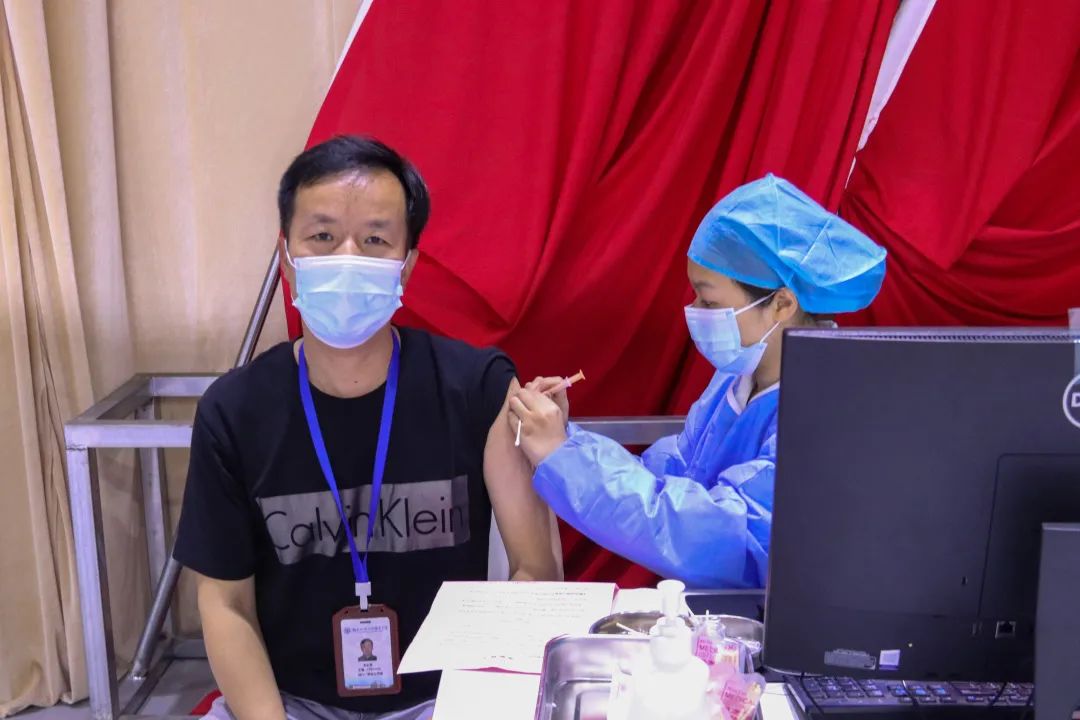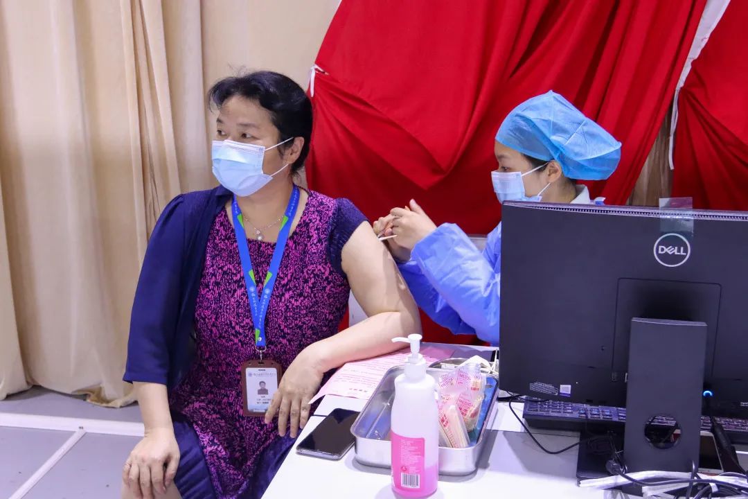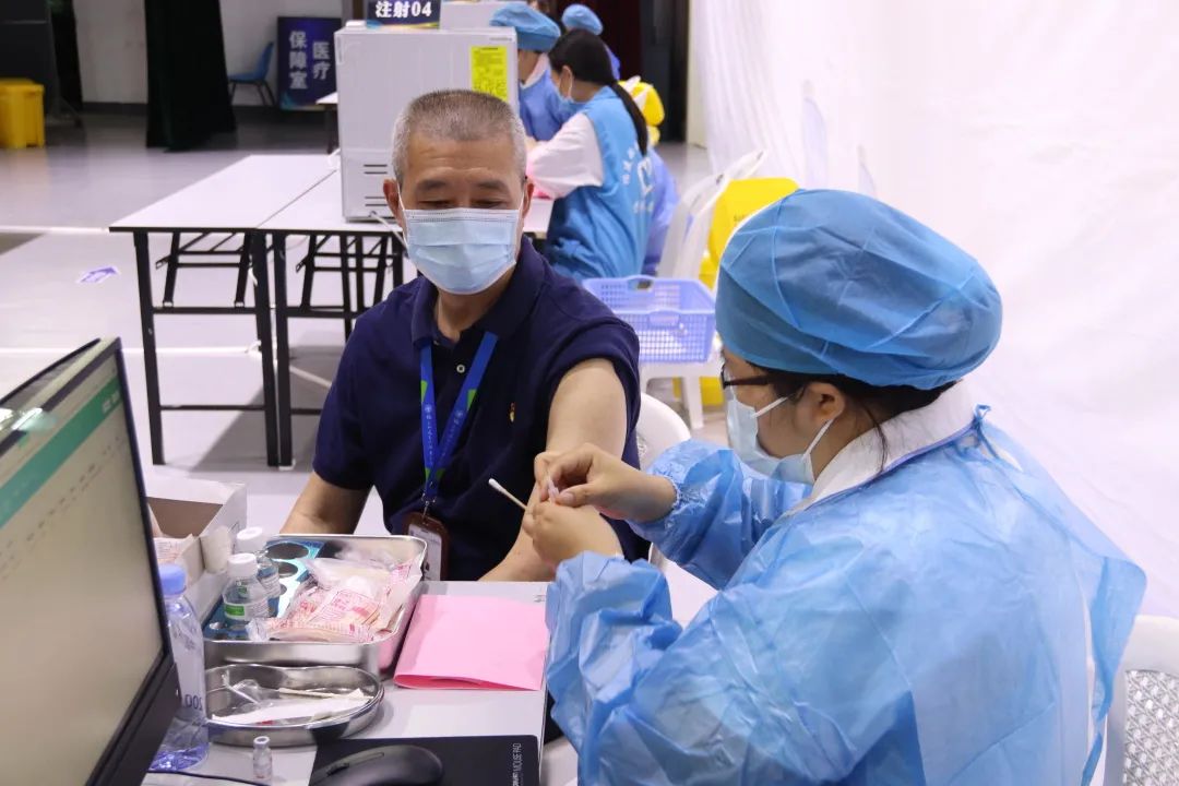 接種現(xiàn)場,現(xiàn)場等待區(qū)、登記區(qū)、注射區(qū)和留觀區(qū)區(qū)隔分明、井然有序。當(dāng)日下午,學(xué)院336名教職員工順利有序完成疫苗接種工作。