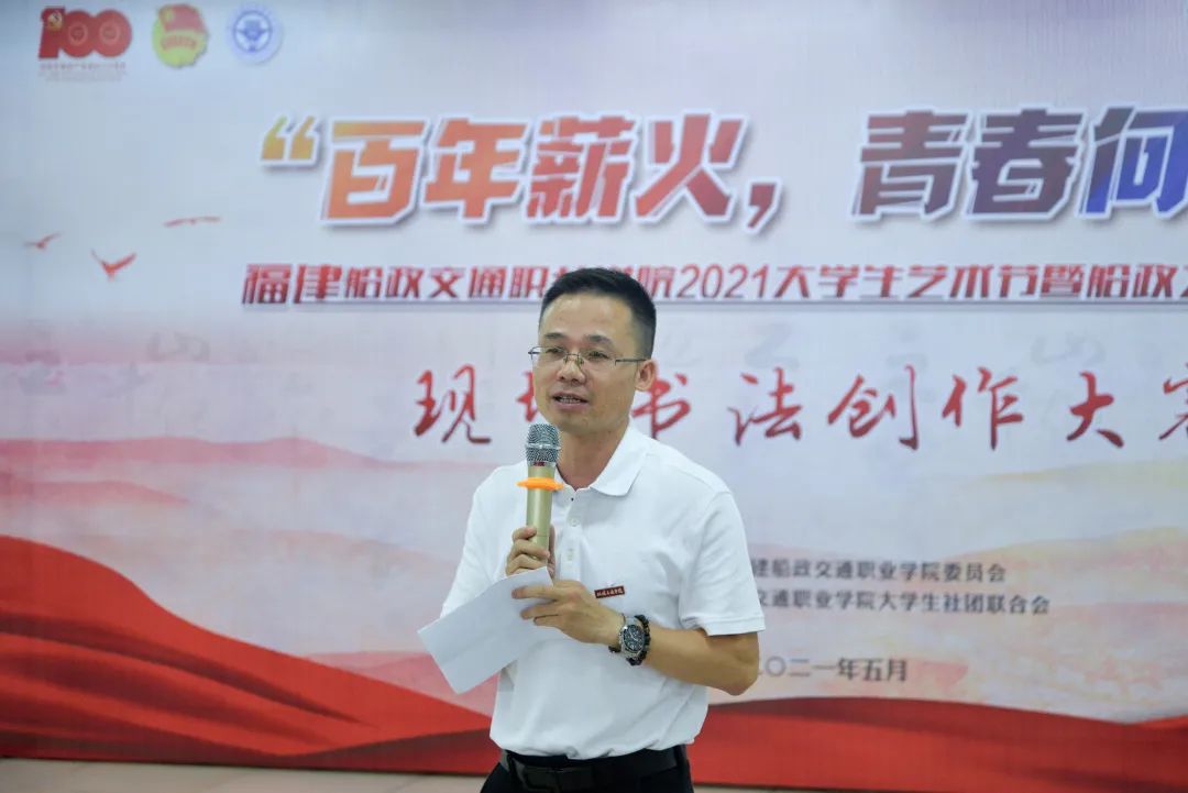 今年是中國共產黨成立100周年,我們相聚在船政校園里,用書法創(chuàng)作大賽這樣的形式相互學習、彼此鑒賞、共同成長,用藝術作品展這樣的方式厚植愛黨、愛國、愛社會主義的情感,傳承紅色基因,致敬建黨百年!