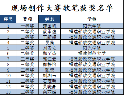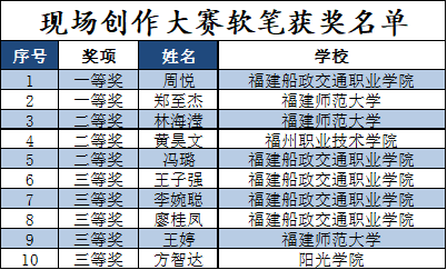 現(xiàn)場書法創(chuàng)作大賽獲獎名單