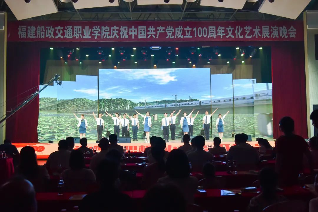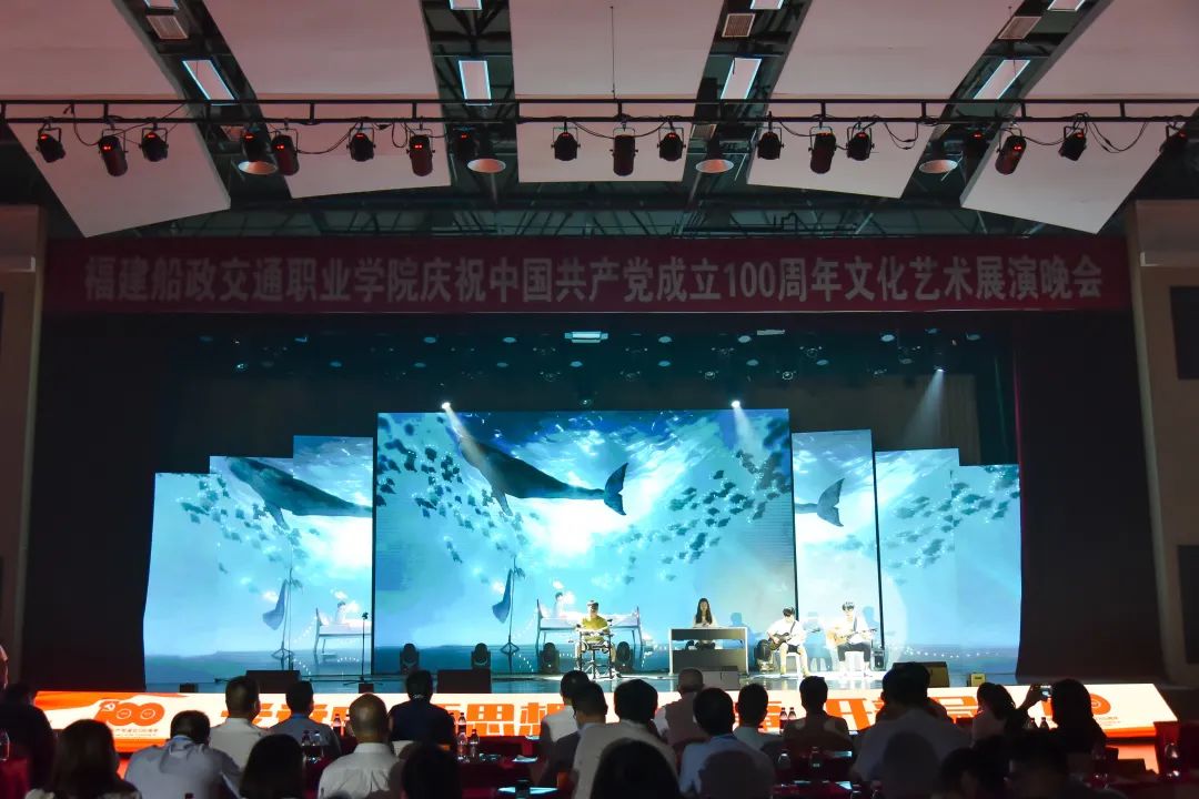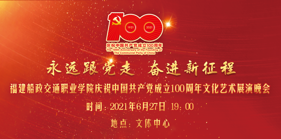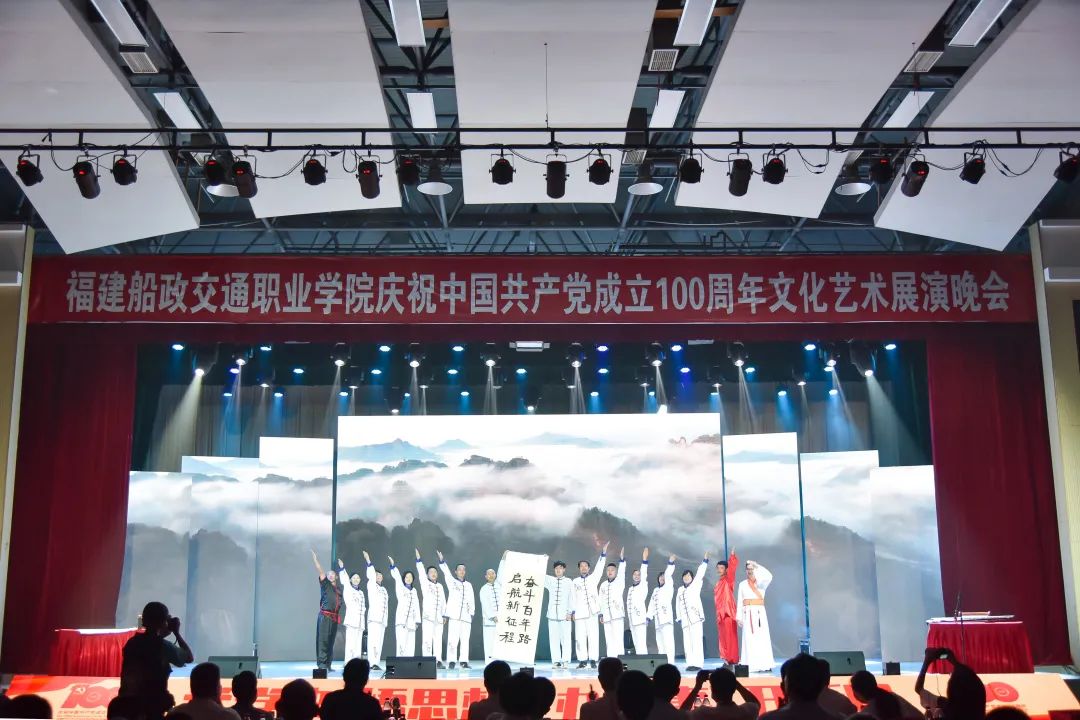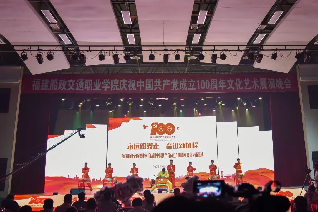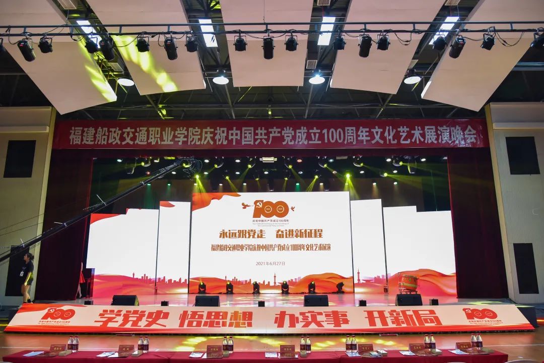 2021年6月27日晚19:00,“永遠跟黨走 奮進新征程”福建船政交通職業(yè)學院慶祝中國共產(chǎn)黨成立100周年文化藝術展演晚會在學院北區(qū)文體中心順利舉辦,學院黨委書記張海明,學院黨委副書記、院長陳錦輝,學院黨委副書記陳宜大,學院紀委書記張輝,學院副院長高汝武、張祖柱、陳艷紅,學院所有職能部門負責人和二級學院黨政負責人,閩清職專、合作企業(yè)、共建單位代表,學院師生等500余名參加并觀看了本次晚會。本次晚會采用線上線下同步觀看,線上觀看人次達到8.23萬。