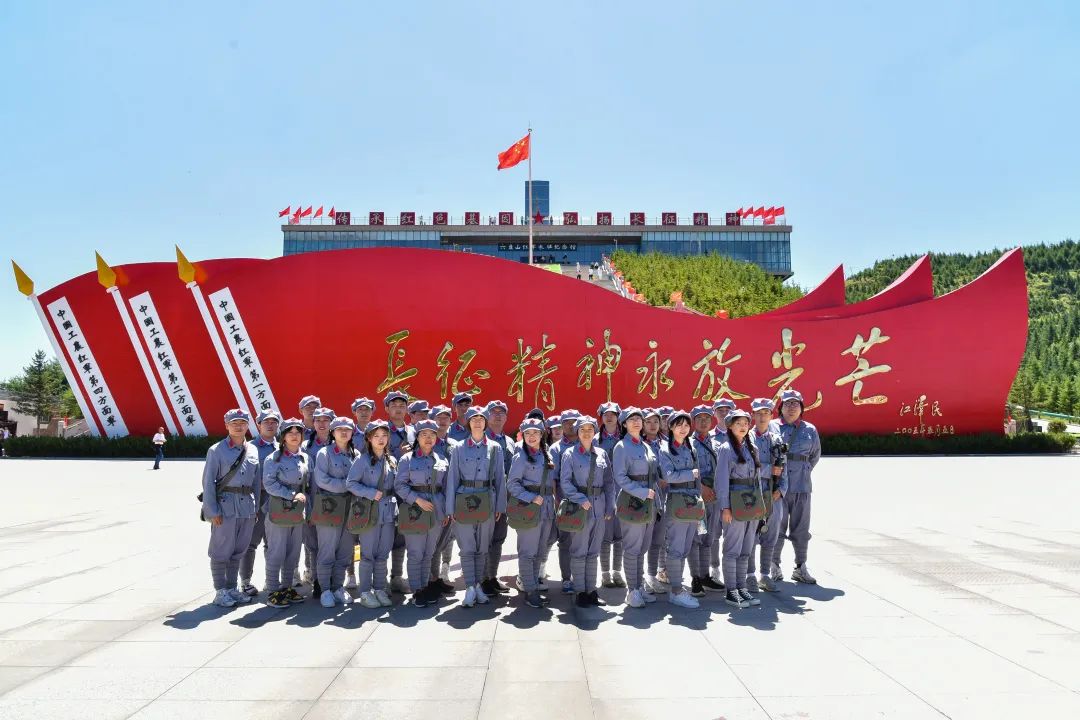 “六盤山,十八旋,上山二十五,下山三十一?!钡巧狭P山頂,我們深刻體會(huì)到了這首民謠里道出六盤山的巍峨與險(xiǎn)峻。舉目南望,視野開闊,六盤山雄姿一覽無遺,“六盤山紅軍長(zhǎng)征紀(jì)念碑”10個(gè)鎏金大字與毛澤東吟詩(shī)臺(tái)上的紅旗遙相呼應(yīng),在紀(jì)念石碑前我們齊聲高唱“沒有共產(chǎn)黨就沒有新中國(guó)”,在鮮紅的黨旗下,我們重溫入黨誓詞,歌聲嘹亮,誓言堅(jiān)定,一幕幕革命場(chǎng)景在腦海里再次重映,這一刻我們心底在吶喊著“強(qiáng)國(guó)有我,請(qǐng)黨放心”!