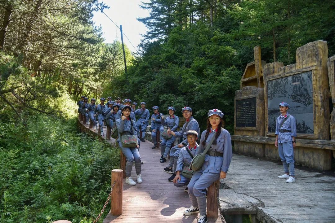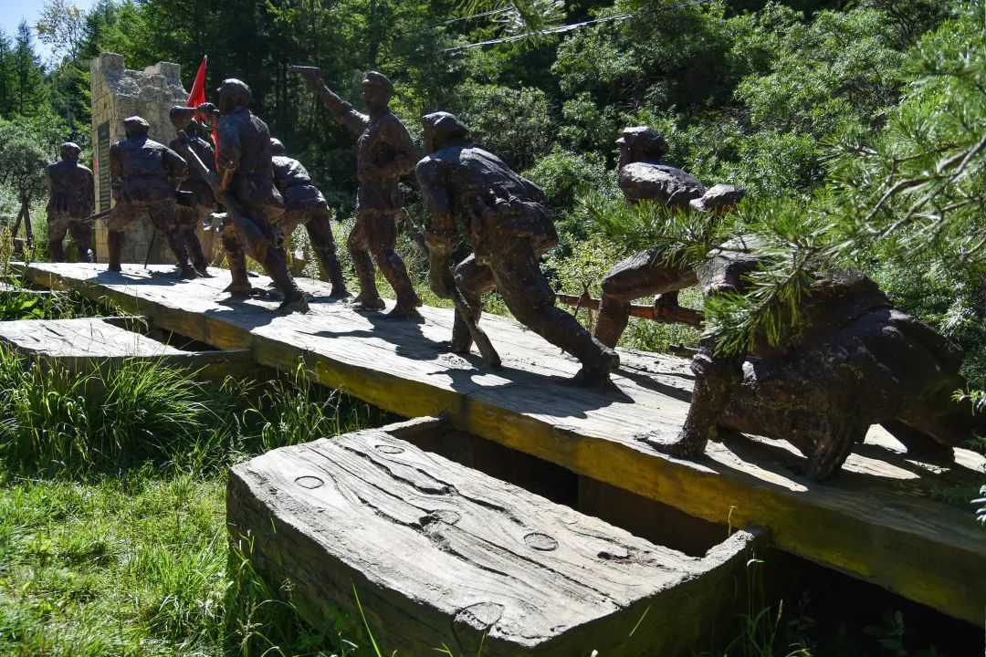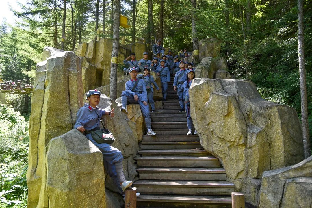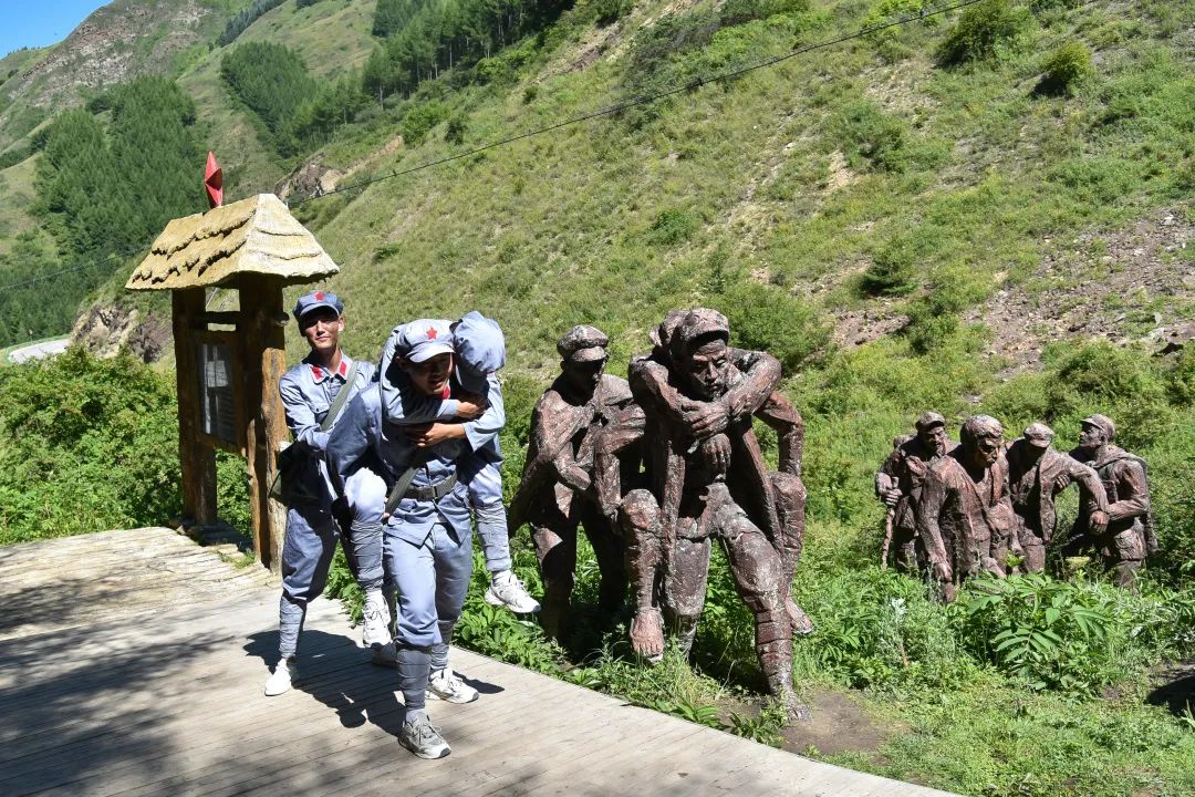 “紅軍小道”上,以雕像群與場(chǎng)景復(fù)原的形式再現(xiàn)了從江西瑞金到陜北長(zhǎng)征路上重大事件的十八個(gè)主要場(chǎng)景,從山腳沿小道千回百轉(zhuǎn),“四渡赤水”“懋功會(huì)師”等經(jīng)典場(chǎng)景逐一呈現(xiàn),隊(duì)員們被深深吸引,在“血戰(zhàn)湘江、突破烏江,遵義會(huì)議、巧渡金沙江、飛奪瀘定橋、艱難草地行、會(huì)師臘子口”等場(chǎng)景中合影,探尋著當(dāng)時(shí)的紅色記憶。