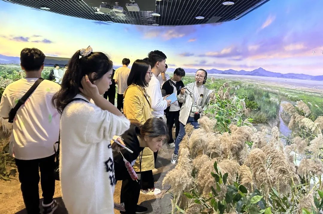 在閩江河口濕地博物館,社員們通過(guò)空中濕地模型沙盤(pán)、智能機(jī)器人互動(dòng)體驗(yàn)屏等充分感受到閩江河口濕地蘊(yùn)藏的豐富自然資源以及在保護(hù)生態(tài)環(huán)境、保持生物多樣性中所起到的不可替代作用。值得一提的是展廳內(nèi)的270°環(huán)繞投影的墻面可看候鳥(niǎo)飛過(guò),聽(tīng)雨落、鳥(niǎo)鳴、雷聲,讓人仿佛置身于真實(shí)的濕地世界,切身體會(huì)到人與大自然的和諧共處,充分領(lǐng)略閩江河口國(guó)家濕地公園的自然風(fēng)光,深刻感受福建生態(tài)文明建設(shè)成果。